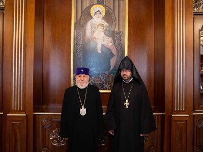 On December 25, in the Mother See of Holy Etchmiadzin, His Holiness Karekin II, Supreme Patriarch and Catholicos of All Armenians; received Rev. Fr. Archimandrite Grigoris Shoghikyan, clerk-Secretary of the Catholicosate Office, who was awarded the degree of Doctor of Philosophical Sciences at the University of Nottingham, Great Britain.