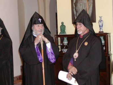 The Encyclical states, in part: "Forty years have passed since you, having undertaken the mission of the kind and brave pastor of our Church, are serving our people living in the Diaspora. In all places where you have served, be it in the Armenian Dioceses of Damascus, Greece, or France, you have used your abilities to sow the seeds of the 'Word of God' in the souls of the Armenians, always pursuing the goal to strengthen the faith of the flock under your spiritual care, and inspire love towards the Mother See of Holy Etchmiadzin, the Armenian Church and the Homeland.