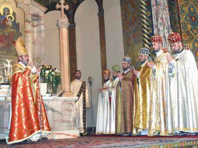 On May 2, Divine Liturgy was celebrated in the Mother Cathedral of Holy Etchmiadzin, with His Holiness Karekin II, Supreme Patriarch and Catholicos of All Armenians, presiding. The celebrant was His Grace Bishop Abraham Mkrtichian, Primate of the Diocese of Syunik (Armenia). During the celebration of the Liturgy, six deacons of the Mother See were ordained to the priesthood.