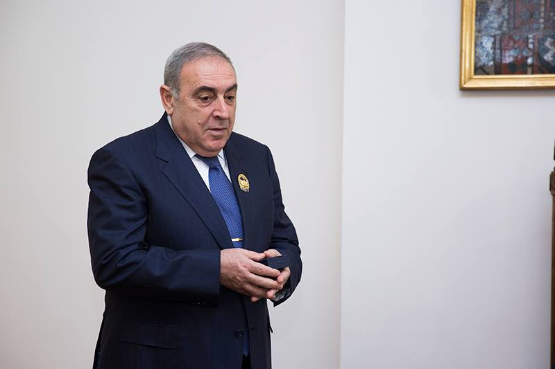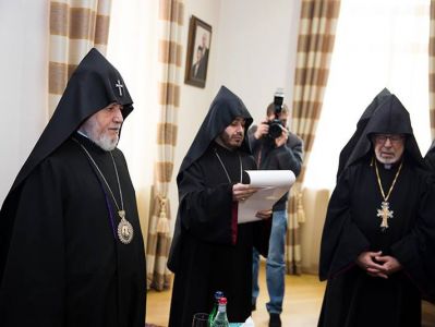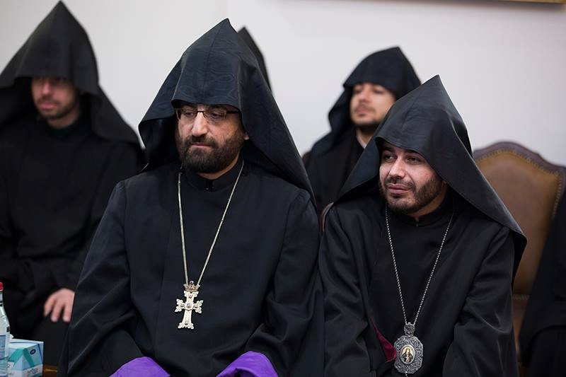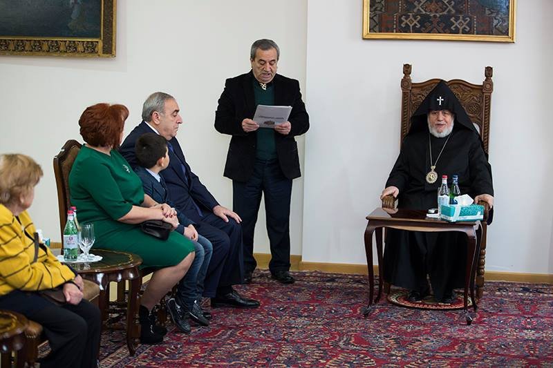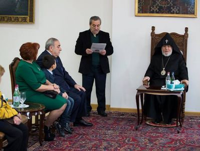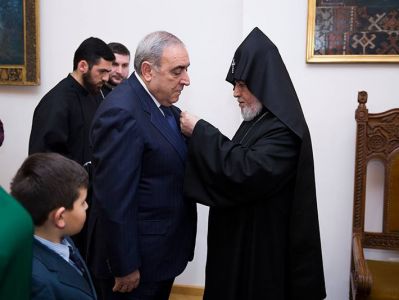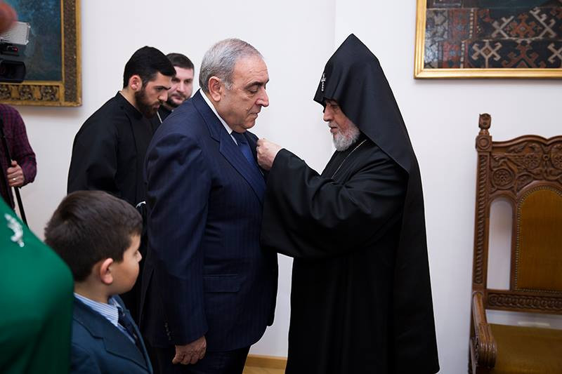 His Grace Bishop Gevork Saroyan, Dean of the higher religious-educational institutions of the Mother See read the Encyclical which stated in part: “We are pleased to have an opportunity to reflect on your capable activities. For many years, serving in high state positions, you have made praiseworthy contribution to the vibrancy and prosperity of our country. During Soviet times, you undertook responsible duties in the Diaspora Liaison Committee and made consistent efforts to strengthening the Homeland-Diaspora ties. Following independence, you continued to offer your skills and rich experience with growing zeal, to the worthy cause of the strengthening and vibrancy of our Homeland. Your successes and achievements are the kind results of your God-loving and patriotic spirit and conscientious and ardent work.