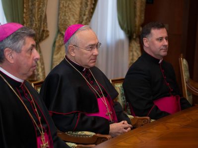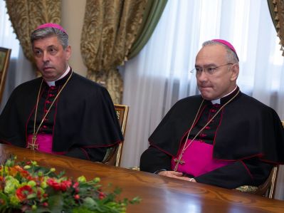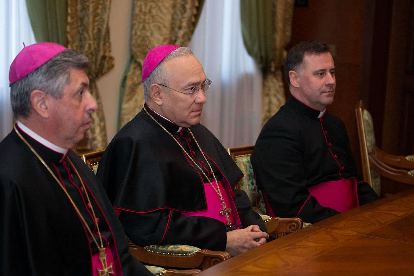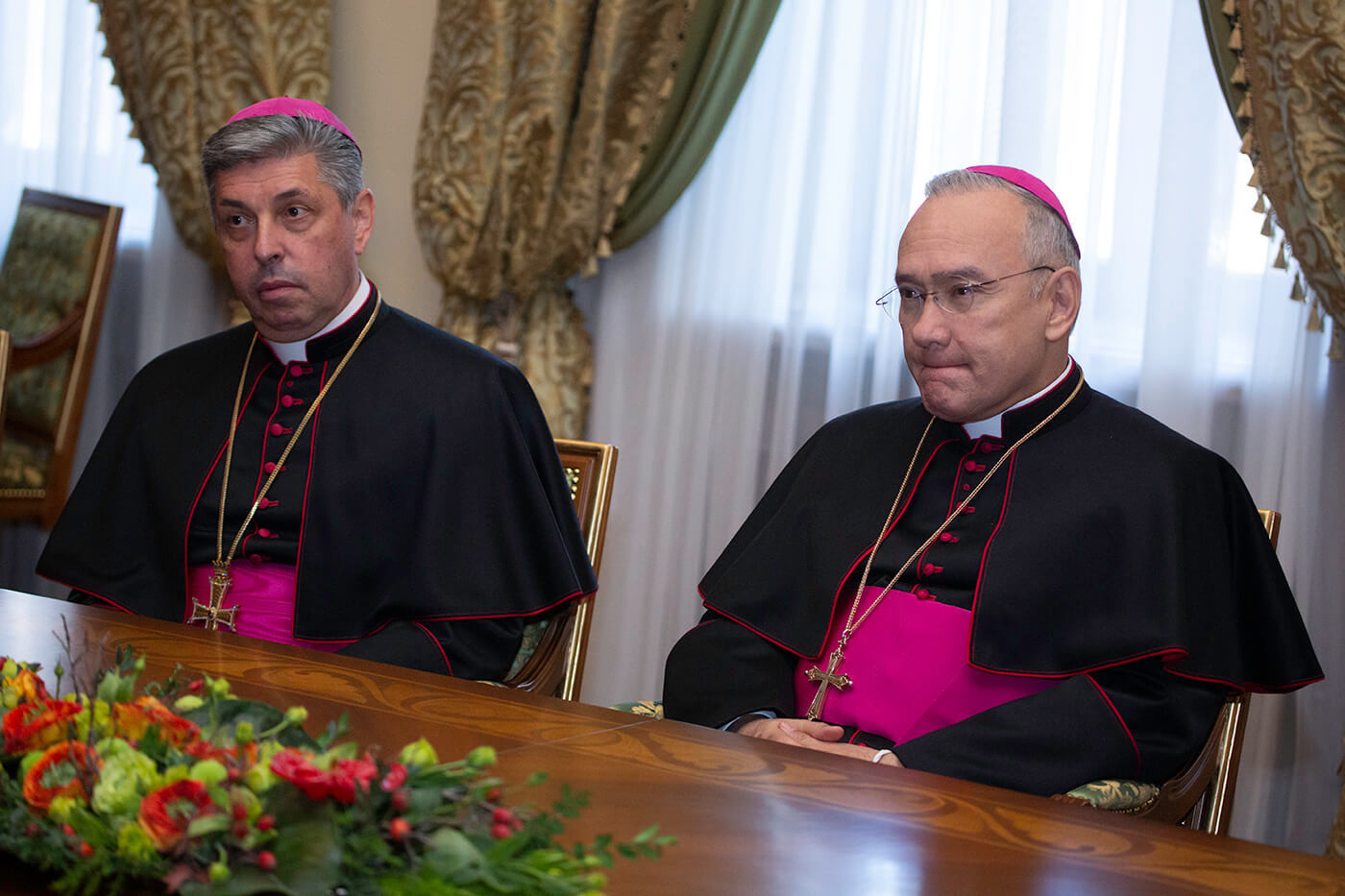 On October 28, in the Mother See of Holy Etchmiadzin, His Holiness Karekin II, Supreme Patriarch and Catholicos of All Armenians; hosted His Eminence Archbishop Edgar Peña Parra, Substitute for the Secretariat of State of the Holy See; and his delegation, accompanied by Mr. Karen Nazaryan, Ambassador Extraordinary and Plenipotentiary of the Republic of Armenia to the Vatican; and Archbishop José Avelino Bettencourt, Apostolic Nuncio of the Holy See.