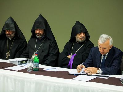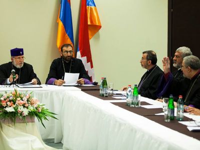 At the opening of the meeting His Holiness conveyed his blessings to the clergy and lay members of the Council. He also conveyed his personal appreciation to Mr. Bako Sahakyan, President of Nagorno-Karabakh; and His Eminence Archbishop Pargev Martirosyan, Primate of the Diocese of Artsakh; for the invitation to hold the SSC meeting in Artsakh; on the occasion of the 25th anniversary celebrations of the independence of Artsakh. His Holiness stressed the importance of holding the Council meetings in various Armenian dioceses, which will promote awareness and further strengthen the spiritual life of the communities.