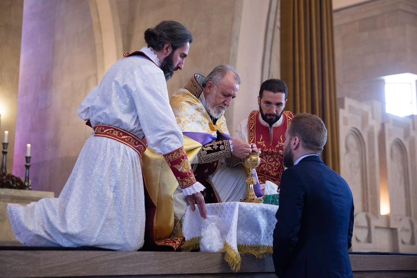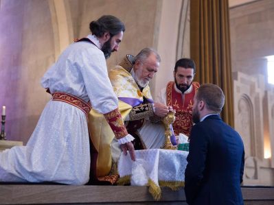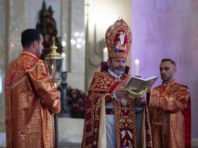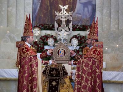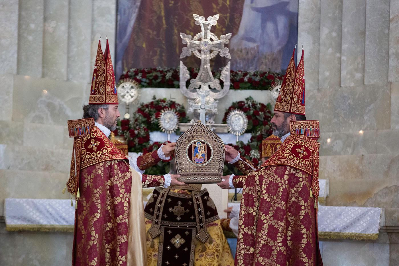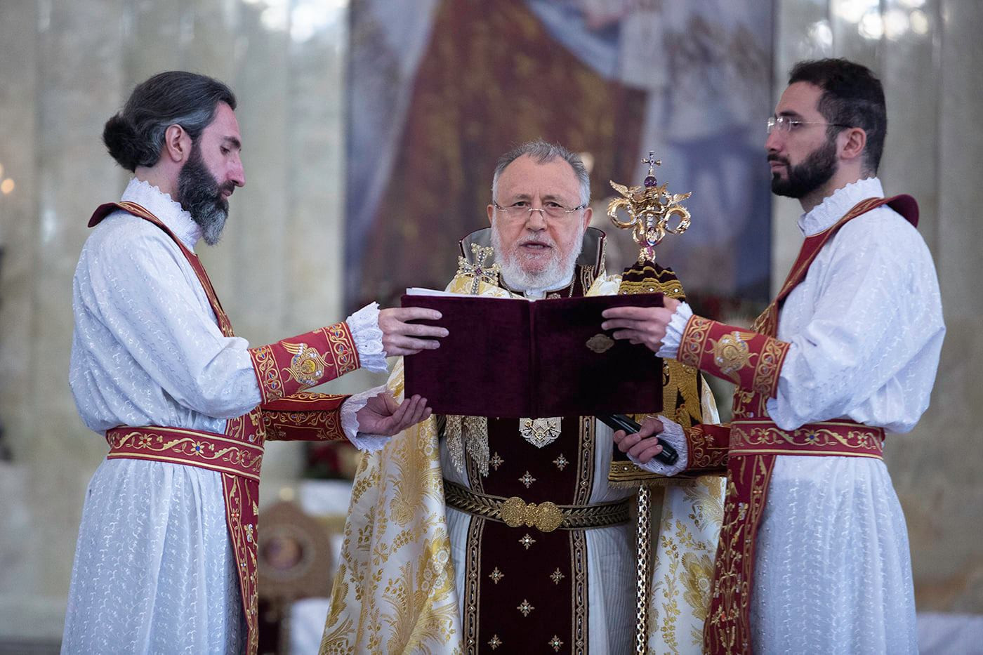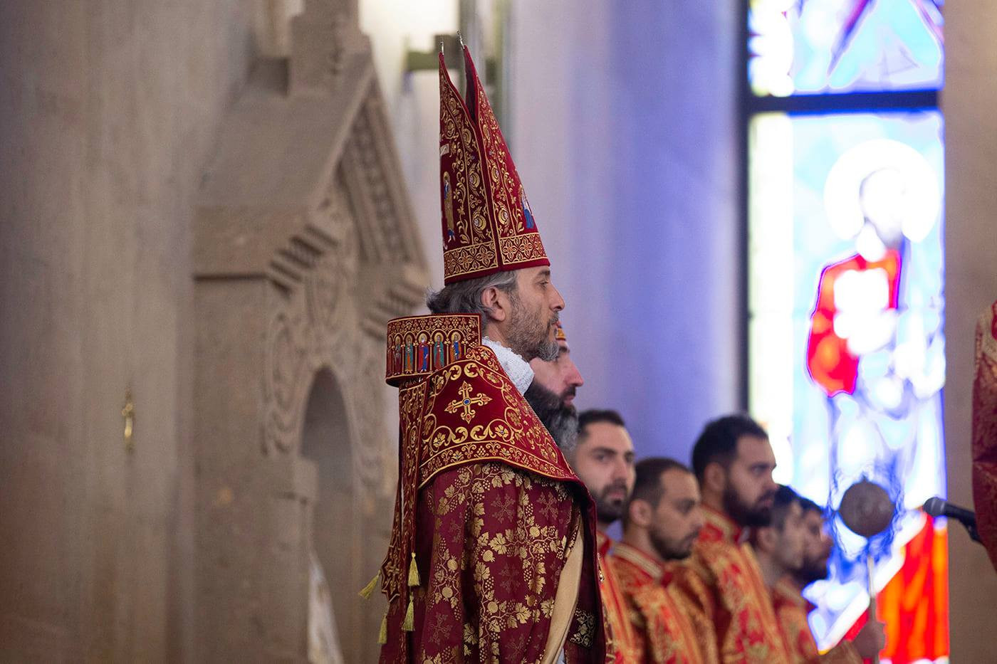 Assisting His Holiness at the Holy Altar were His Grace Bishop Musheg Babayan; Grand Sacristan of the Mother See of Holy Etchmiadzin; and His Grace, Bishop Vasken Mirzakhanyan, Director of the Ecclesiastical Conceptual Issues Office of the Mother See of Holy Etchmiadzin.