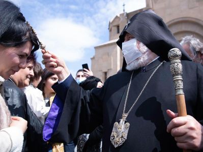 Dear ones, the light of Christ's salvation and resurrection, radiates through the virtue of making sacrifices; sacrifices for one another, and sacrifices for the love of our entire nation. It is in this light that we turn away from selfishness and turn toward godliness and that we cast off deadly conduct and turn toward the life-giving God, that actions which cause suffering are replaced by the deeds of the resurrected life, leading towards salvation and eternity. Bringing our country and people out of the plagues and raising the life of Artsakh from ruins, the revival of the Armenians and the homeland are imperative commitments that must be taken up by all the sons and daughters of the nation, political parties, and in particular the authorities,with the greatest responsibility. These patriotic efforts will be adorned, be crowned with success through the commitment to save the statehood from a fatal situation, by giving up personal ambitions, and prioritizing the interests of the state and the nation. In this spirit, we must bring to a victorious destination our cherished aspirations for the restoration of our painful losses, the protection of our national rights, and the universal recognition of the Armenian Genocide.