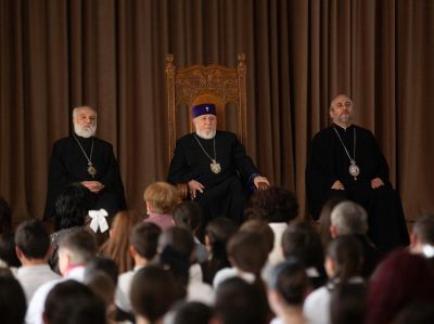 At the conclusion, the Catholicos of All Armenians wished that under the blessings of God, the students would grow tall, become strong and contribute to the building of a good and powerful Motherland.