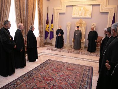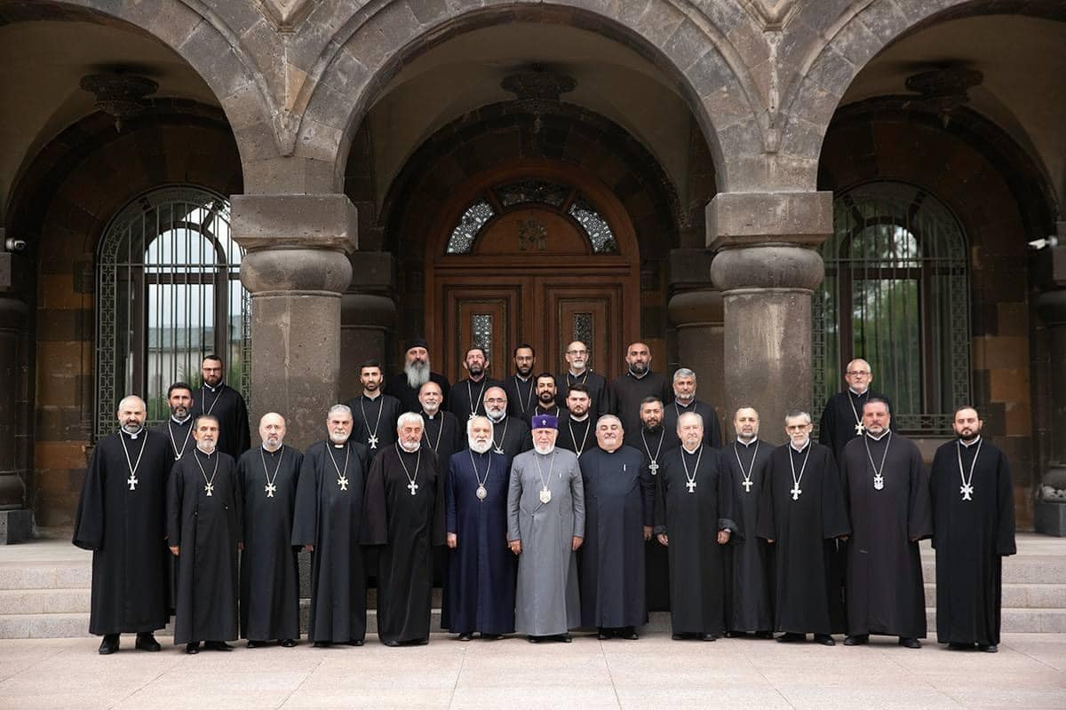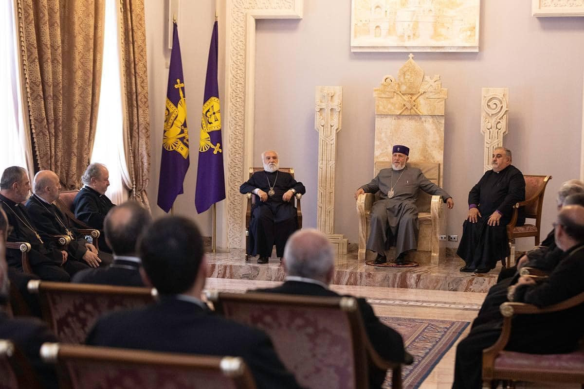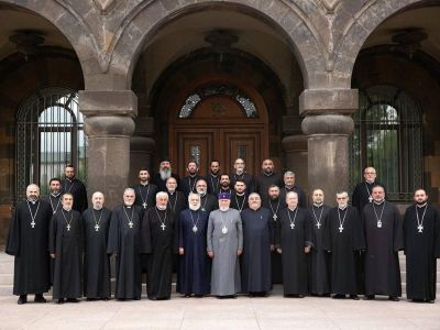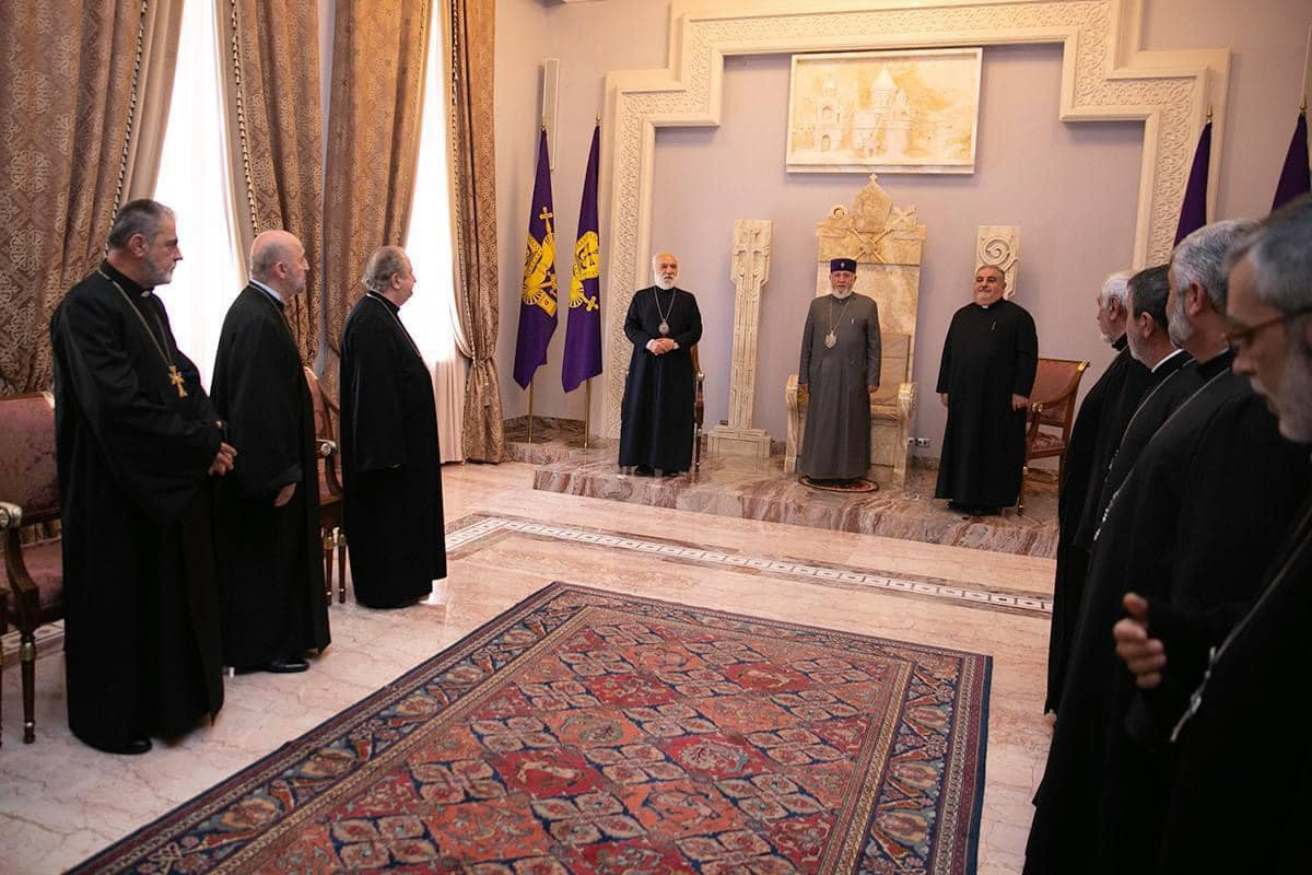 At the meeting, the director of the "Garegin I" educational center of the Mother See of Holy Etchmiadzin, His Grace Bishop Vahan Hovhannisyan, introduced to the Armenian Patriarch the clergy gathered at the Mother See from different dioceses of Armenia and the Diaspora, and reflected on the effectiveness of the training courses.