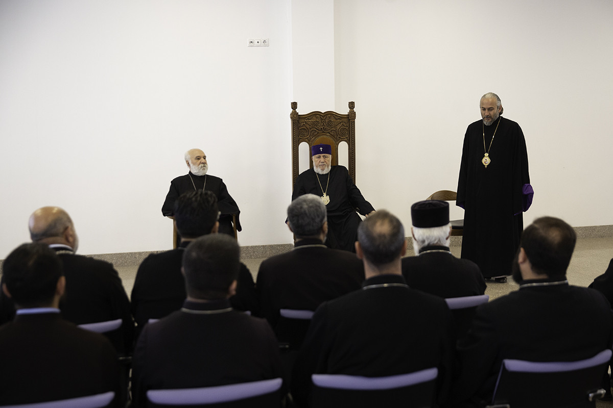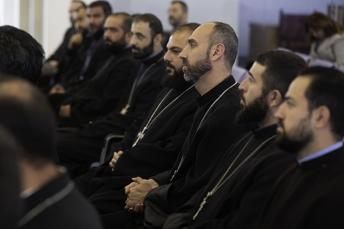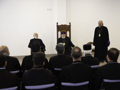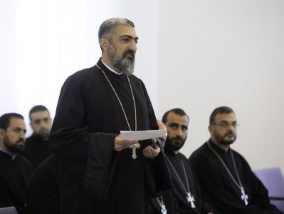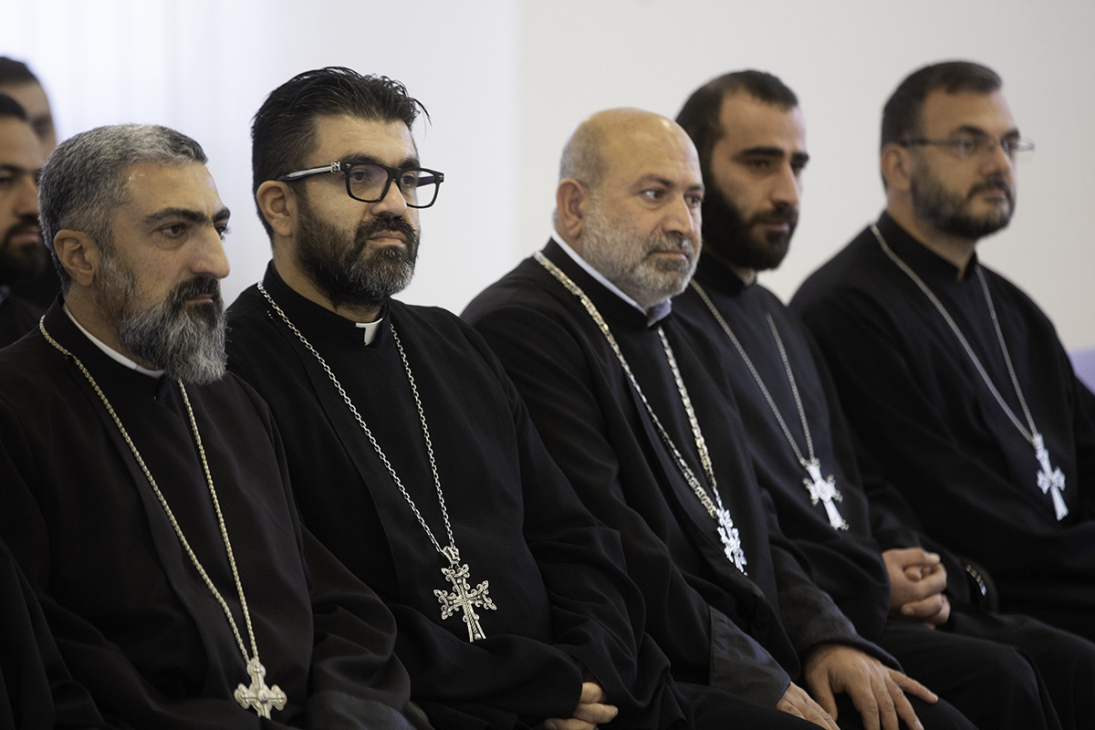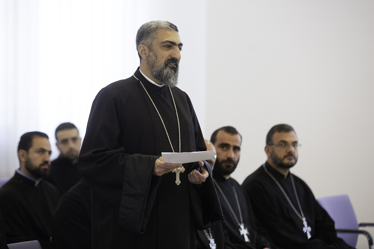 His Holiness then conveyed his blessings to the spiritual fathers, expressing satisfaction at the resumption of the training program. His Holiness stressed the importance of these training courses held at the Mother See, which provide an opportunity for clergymen from different dioceses to come together, to get strengthened through each other, to reflect together on spiritual issues, as well as to exchange spiritual experience. In his remarks, His Holiness urged the priests to strengthen the interaction between the communities to make the spiritual mission even more effective.