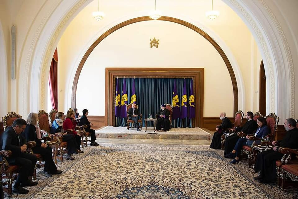 On February 21, His Holiness Karekin II, Supreme Patriarch and Catholicos of All Armenians; received the delegation led by the former Prime Minister of the French Republic and Mayor of Le Havre Mr. Edouard Philippe in the Mother See of Holy Etchmiadzin.
