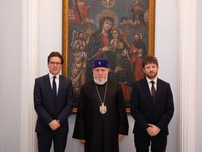 On December 4, in the Mother See of Holy Etchmiadzin, His Holiness Karekin II, Supreme Patriarch and Catholicos of All Armenians; received member of the European Parliament Mr. Geoffroy Didier, accompanied by Mr. Olivier Decottignies, Ambassador Extraordinary and Plenipotentiary of the French Republic to Armenia.
