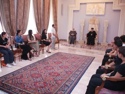 On July 13, in the Mother See of Holy Etchmiadzin, His Holiness Karekin II, Supreme Patriarch and Catholicos of All Armenians received the members of the Association "Armenian Youth of France" (JAF) of Marseille, France, accompanied by the Head of the group Mr. Pascal Shamasyan and Mrs. Lusine Melikyan.