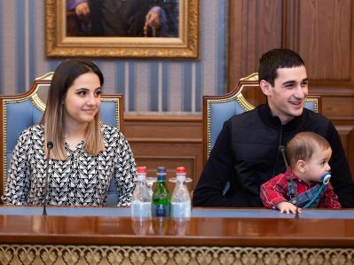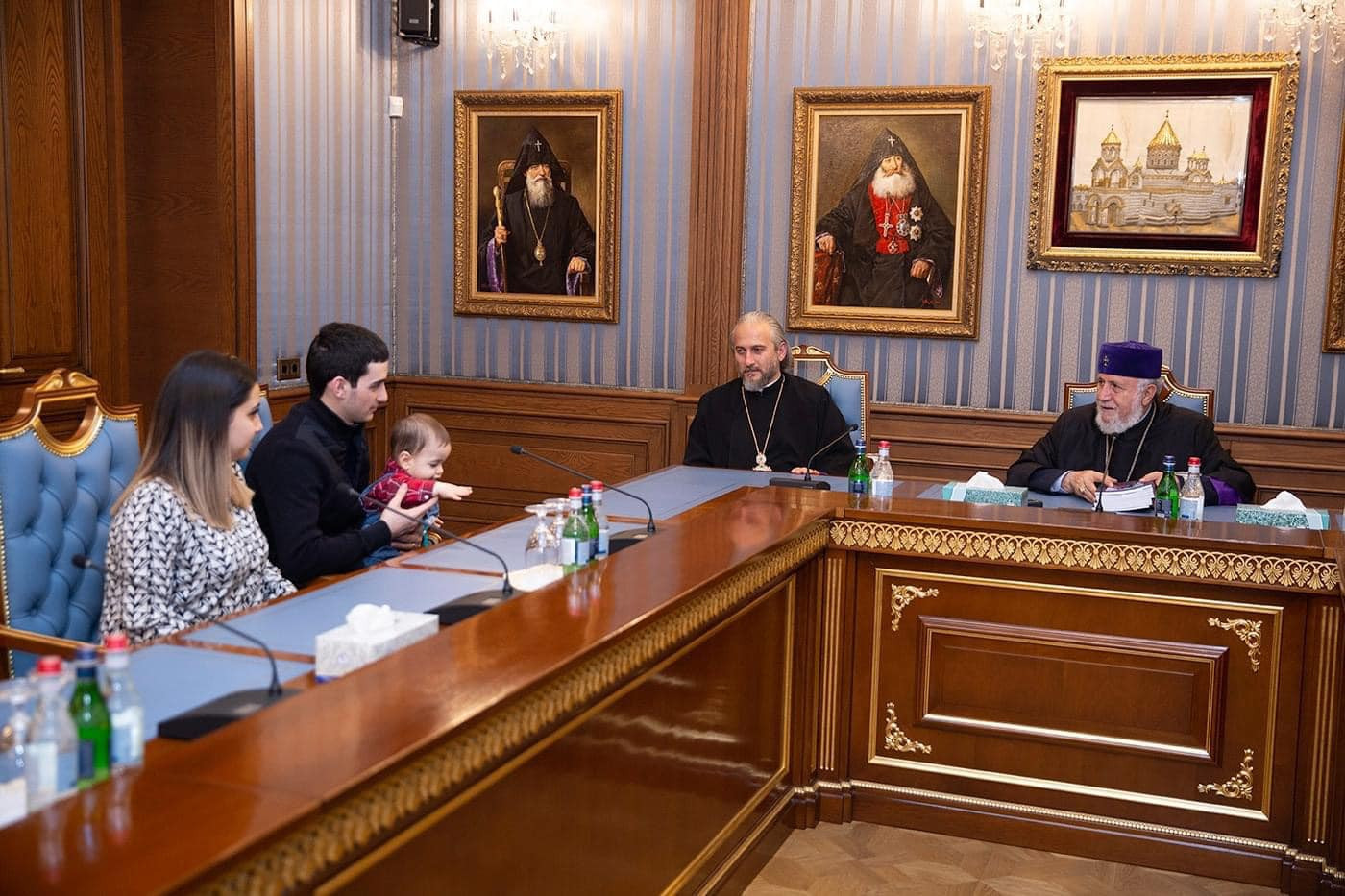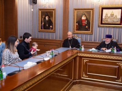 Grigor Movsisyan, Chairman of the Diocesan Council of Aragatsotn Diocese, was present at the meeting. Mr. Movsisyan informed His Holiness about the successful course of Arthur Hovhannisyan's treatment and prosthetics, exptressing gratitude to His Holiness for his paternal care and concern.