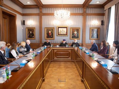 His Holiness conveyed his blessing to the attendees, expressing joy for the opportunity to visit the spiritual center of all Armenians. His Holiness emphasized that despite the difficult situation in the Homeland, such visits are an opportunity for Armenians around the world to renew their patriotic and spiritual feelings and to contribute with new enthusiasm to the progress of the Homeland and community life.