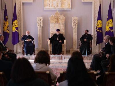 At the conclusion of the meeting, the attendees addressed their questions to His Holiness Karekin II, regarding the challenges facing the homeland and the Armenian people and how to overcome them.
