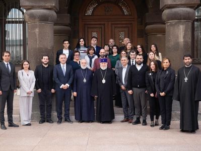 His Holiness, conveying his blessings to the attendees, spoke with satisfaction about the existing cooperation between the Mother See and "Newmeg", as a result of which popular and scholarly literature related to Christianity was published. His Holiness also expressed his appreciation to the management and creative staff of the publishing house for their efforts in the education, upbringing and formation of the value system of Armenians.