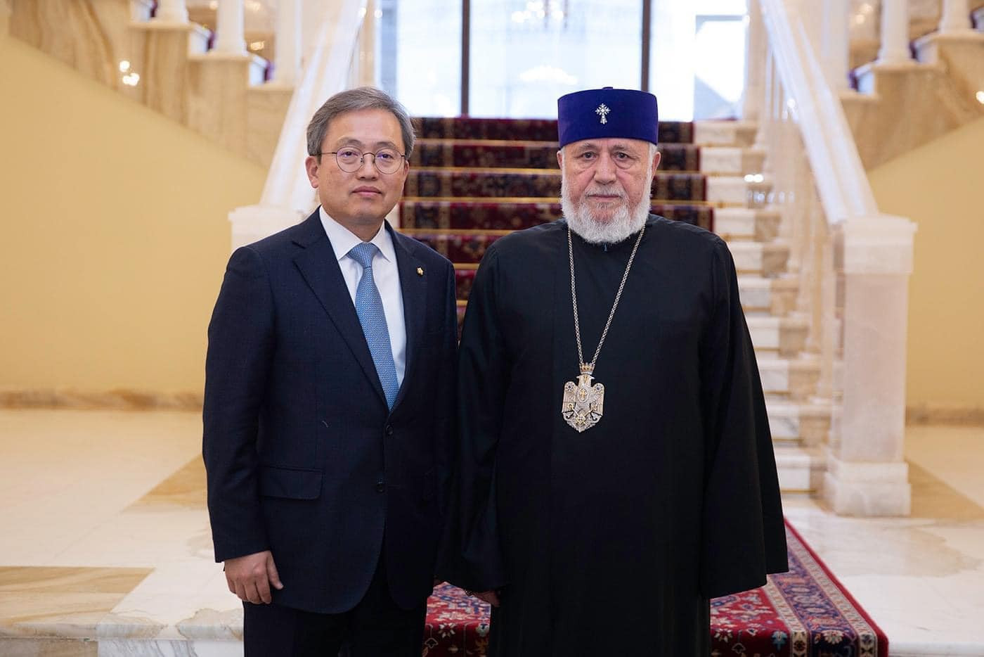 During the meeting, a reflection was made on the situation in the region and post-war challenges. The Catholicos of All Armenians expressed his concern regarding the humanitarian disaster caused by the blocking of the Lachin Corridor, as well as the return of captives and the undisturbed preservation of the Armenian spiritual and cultural heritage in the territories under the control of Azerbaijan, highlighting the consistent efforts of the international community to prevent the dimensional policy adopted by Azerbaijan. In his turn, Mr. Ki Hun Song noted the importance of efforts aimed at the rapprochement of Armenian-Korean cooperation.
