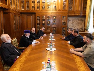 On July 23, in the Mother See of Holy Etchmiadzin, His Holiness Karekin II, Supreme Patriarch and Catholicos of All Armenians; received Rev. Ciprian Ion Ioniță, Responsible for the social department of the Romanian Orthodox Church and Rev. George Alexandru Lepadatu, responsible for the financial department, accompanied by His Grace Bishop Tatev Hakobyan.