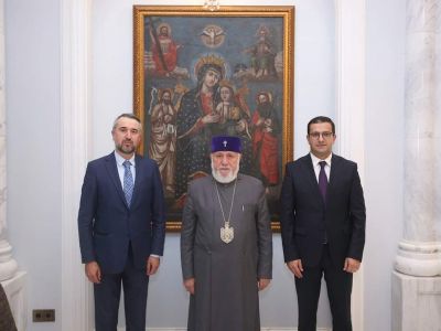 On August 8, in the Mother See of Holy Etchmiadzin, His Holiness Karekin II, Supreme Patriarch and Catholicos of All Armenians; received Ara Khzmalyan, the newly elected Director of the Mesrop Mashtots Matenadaran, and Vahe Torosyan, Deputy director for scientific affairs.