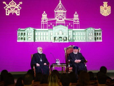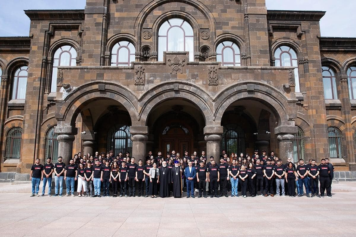 His Holiness expressed his appreciation to the young people for organizing a procession with torches to Tsitsernakaberd Hill every year on April 23, in which many Armenians, led by clergy, pay their respects and bow to the memory of the holy martyrs of the Armenian Genocide.