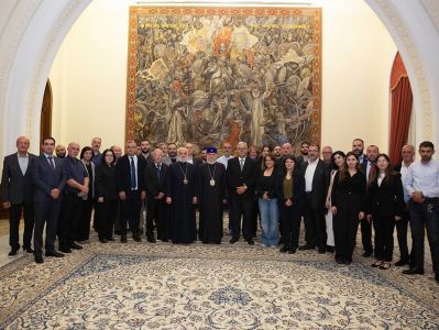 On May 28, in the Mother See of Holy Etchmiadzin, His Holiness Karekin II, Supreme Patriarch and Catholicos of All Armenians; received the participants of the Pan-Armenian conference of ARF Hay Dat commissions and offices, under the leadership of ARF Bureau representative and chairman of the Central Council of Hay Dat commissions, Hakob Ter-Khachaturyan.
