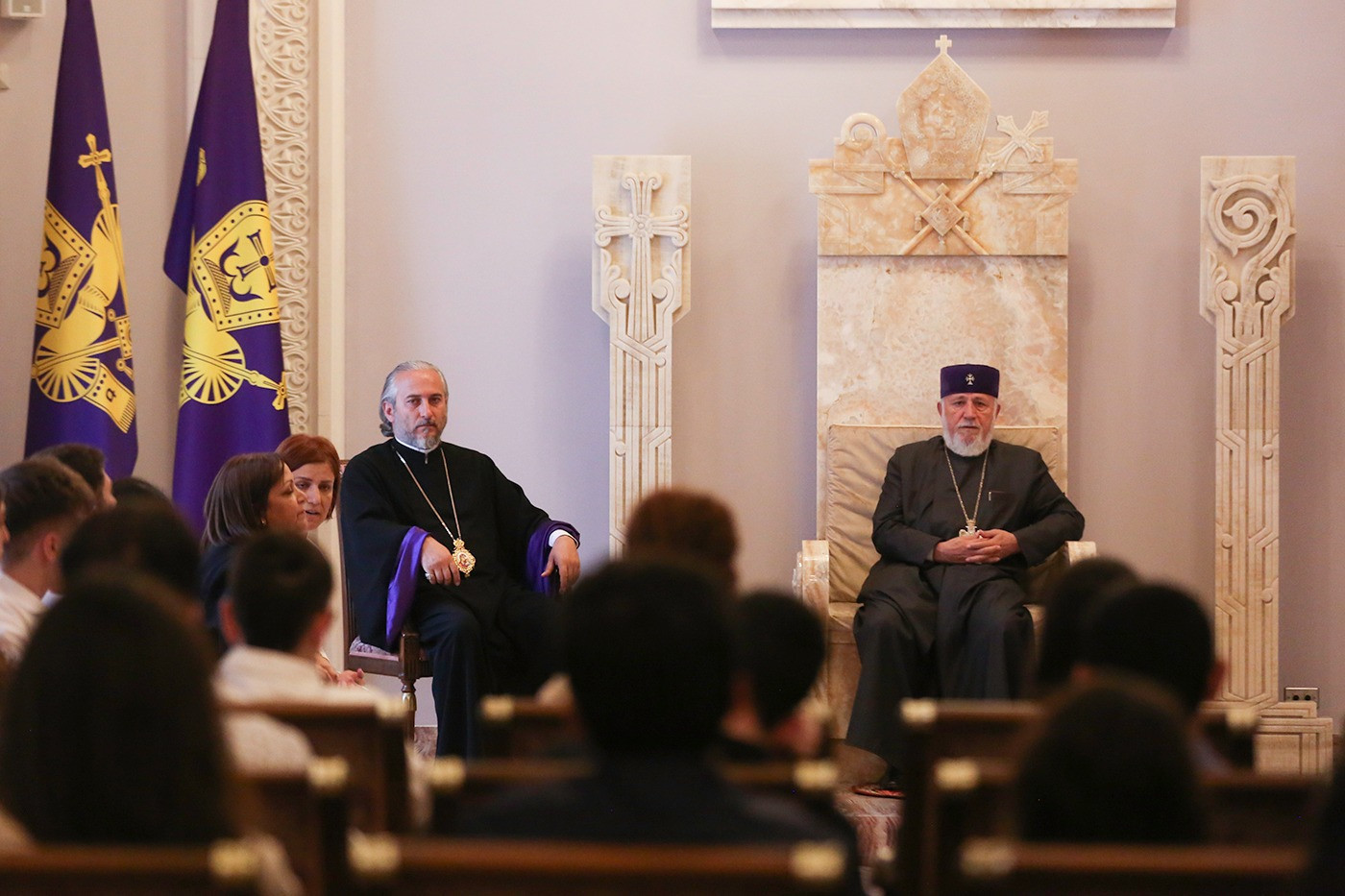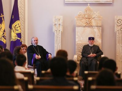 At the conclusion, His Holiness answered the questions of the students, which were related to the efforts made by the Armenian Church for the settlement of the Artsakh conflict and the humanitarian programs implemented for the Artsakh Armenians.
