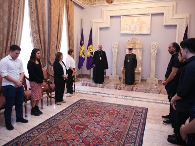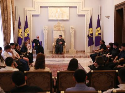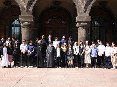 His Holiness, conveying his paternal blessings to the students, happily emphasized that the visit of the students of the school's graduating class to Armenia and the Mother See of Holy Etchmiadzin has become a beautiful tradition. On this occasion, the Catholicos of All Armenians expressed his appreciation to the AGBU officials and the management of the college for such an initiative.