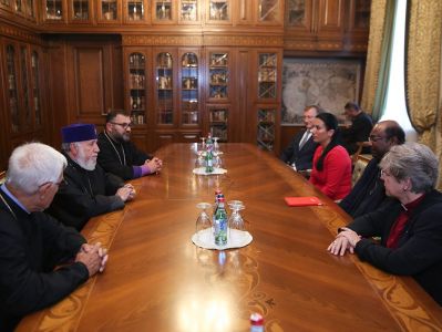 On September 18, in the Mother See of Holy Etchmiadzin, His Holiness Karekin II, Supreme Patriarch and Catholicos of All Armenians; received the Delegation led by the General Secretary of the World Council of Churches (WCC) Dr. Jerry Pillay, accompanied by the Deputy Chairman of the Central Committee of the Council of Europe His Eminence Archbishop Vigen Aikazian.