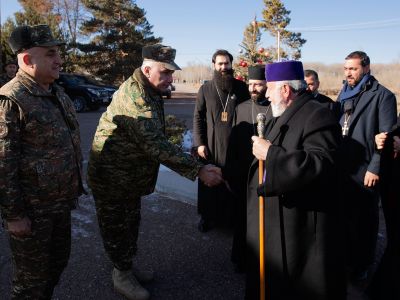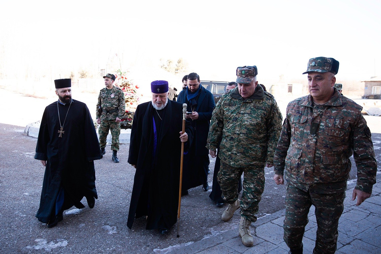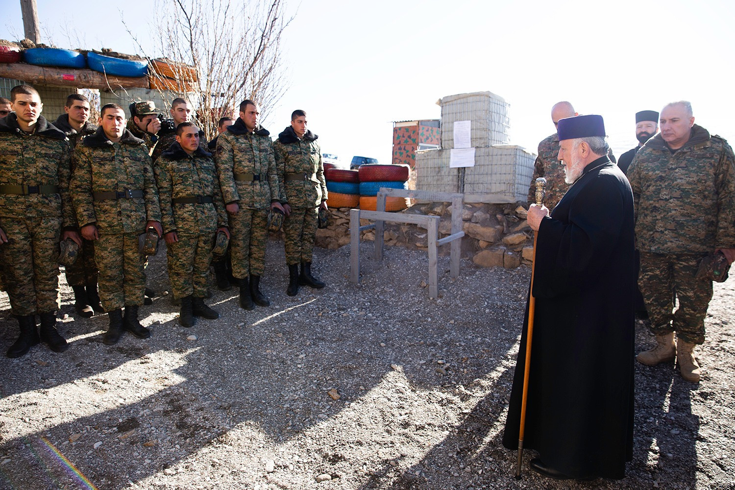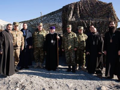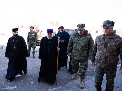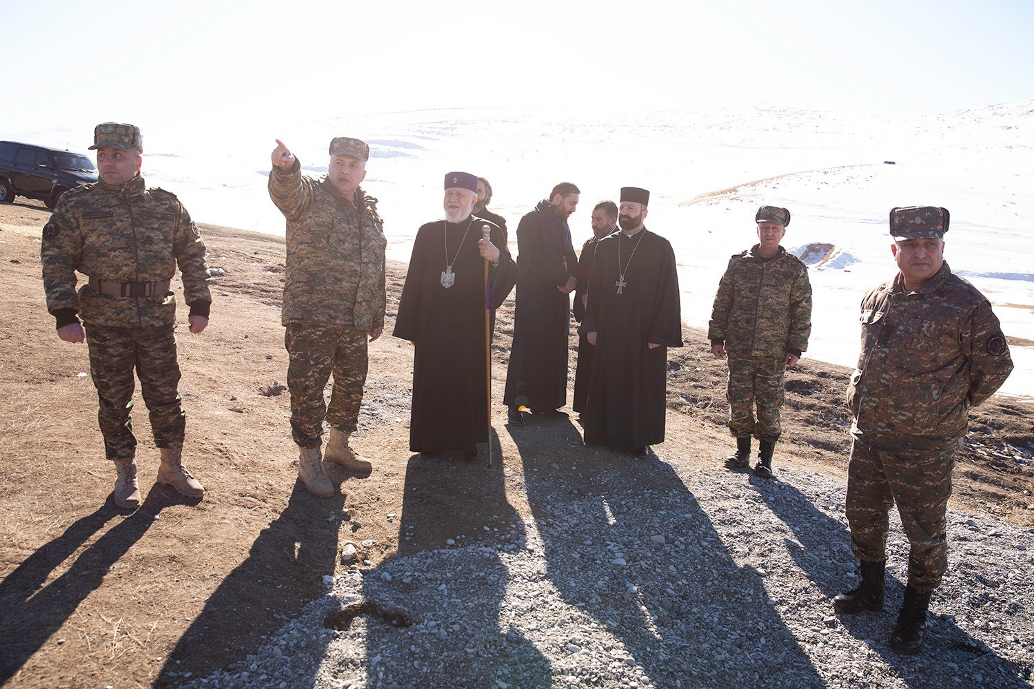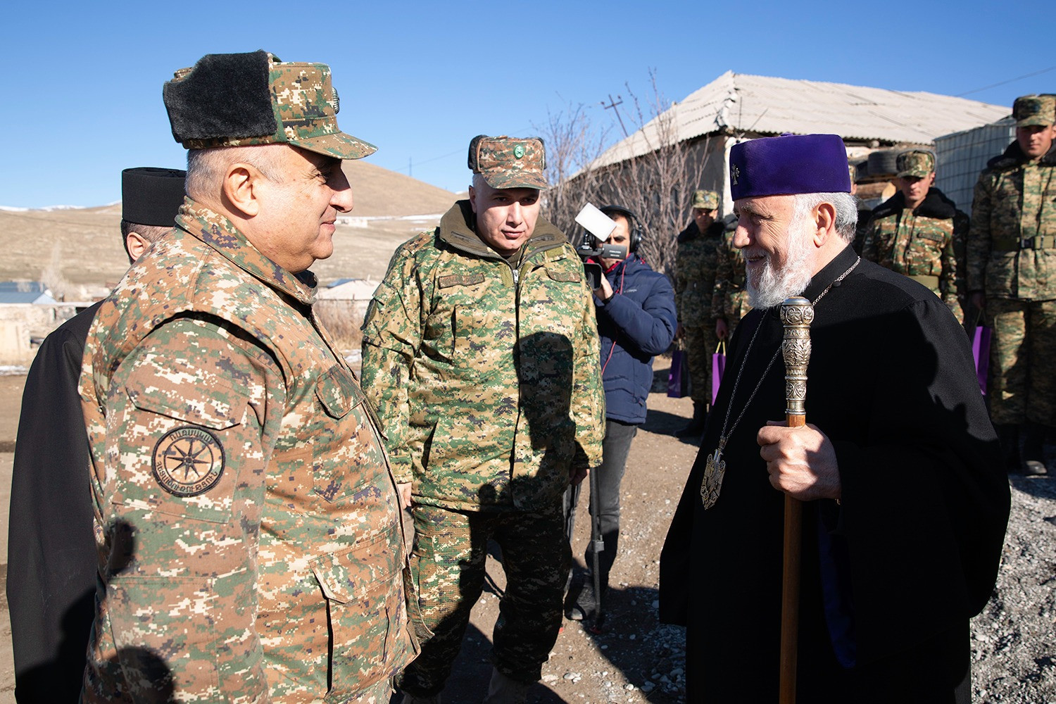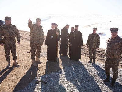 On December 31, His Holiness Karekin II, Supreme Patriarch and Catholicos of All Armenians; accompanied by Rev. Fr. Archimandrite Movses Sargsyan, Head Chaplain of the RA Armed Forces Ministry; Rev. Fr. Archimandrite Partev Barseghyan, Vicar of the Diocese of Gegharkunik and the Brotherhood of the Mother See visited military positions on the western border of the Republic of Armenia.