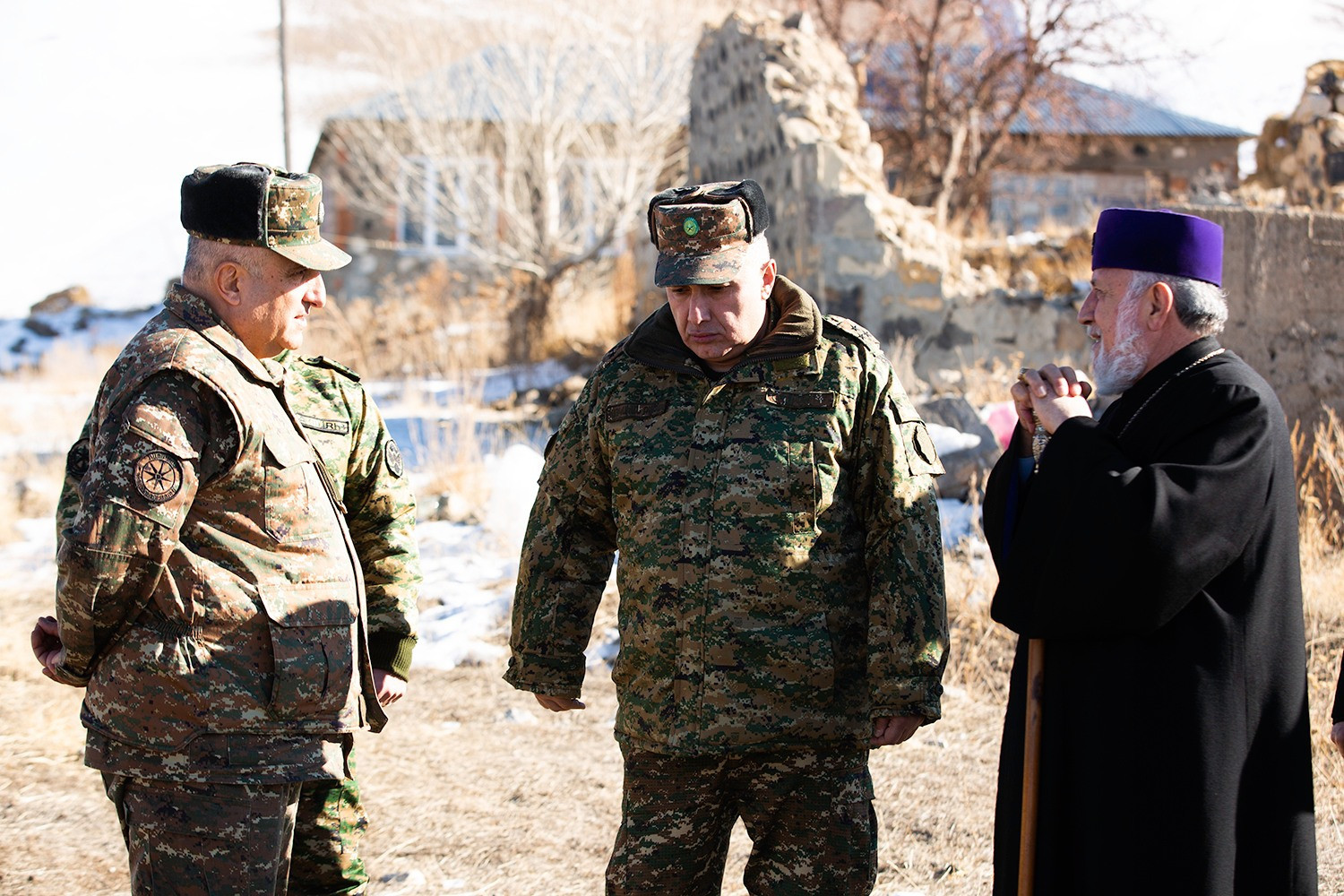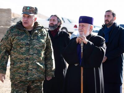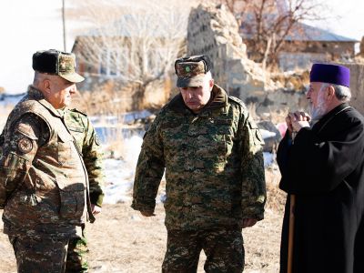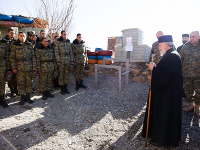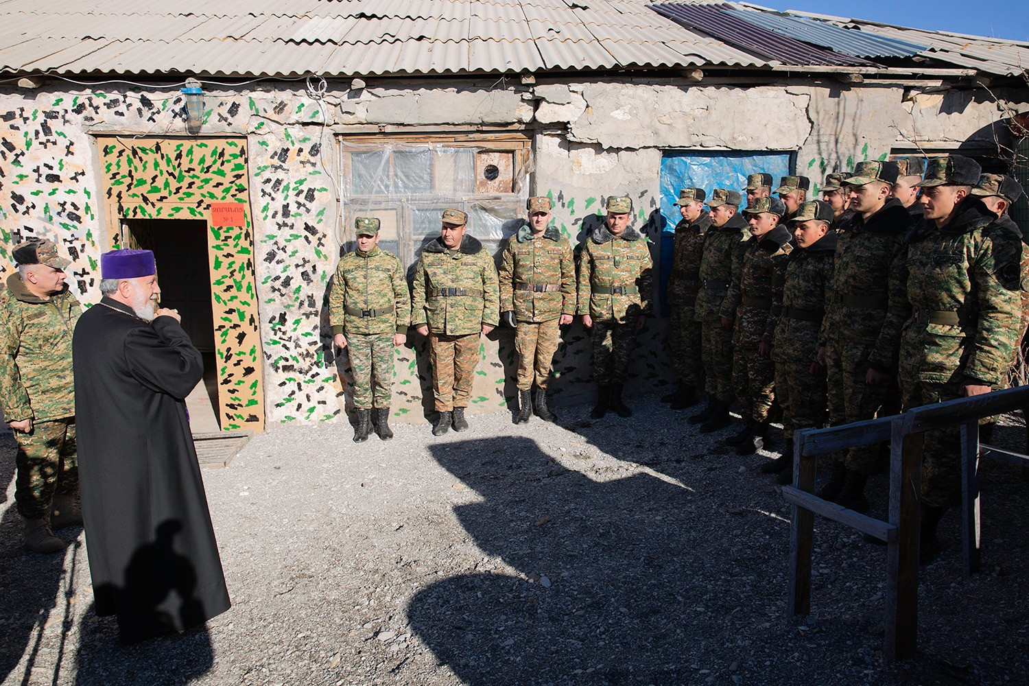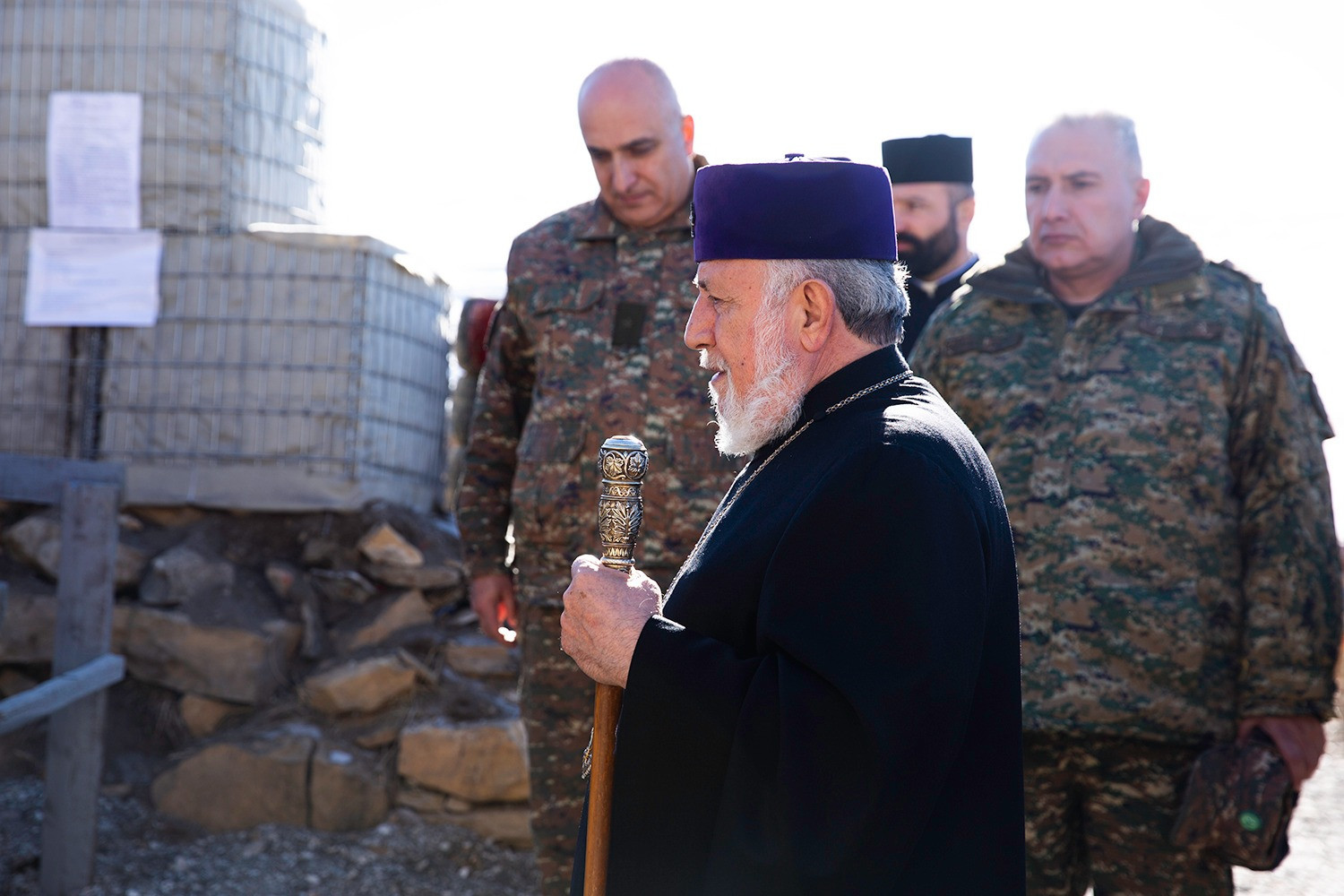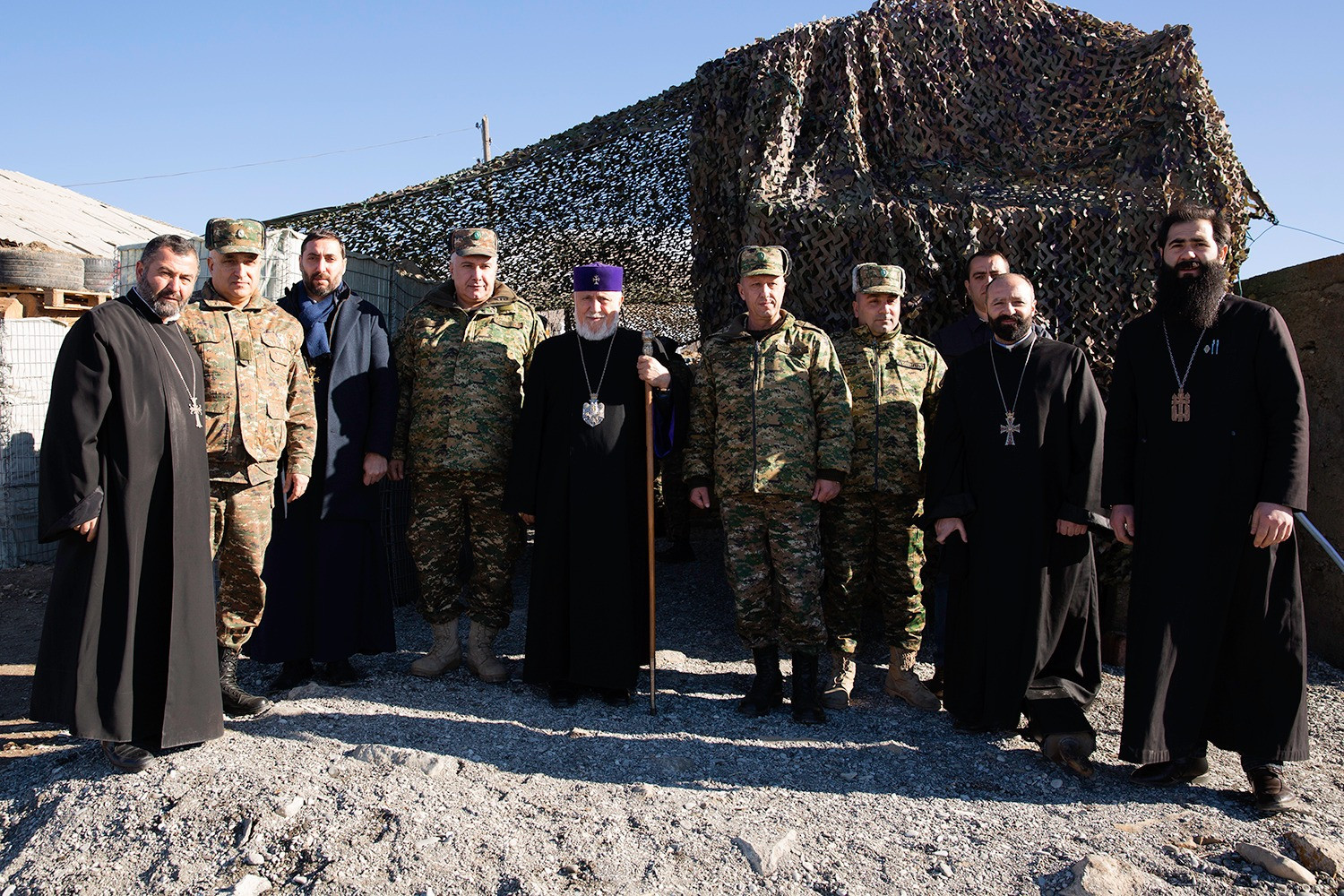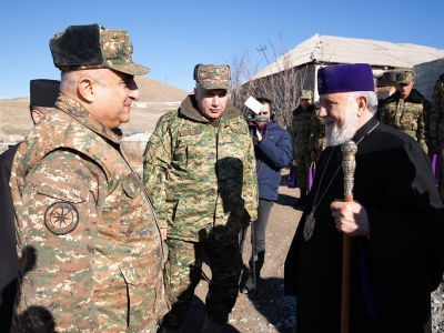 On December 31, His Holiness Karekin II, Supreme Patriarch and Catholicos of All Armenians; accompanied by Rev. Fr. Archimandrite Movses Sargsyan, Head Chaplain of the RA Armed Forces Ministry; Rev. Fr. Archimandrite Partev Barseghyan, Vicar of the Diocese of Gegharkunik and the Brotherhood of the Mother See visited military positions on the western border of the Republic of Armenia.