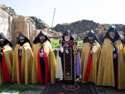 His Holiness was accompanied by His Grace Bishop Mkrtich Proshyan, Director of the Administrative and Economic Department of the Mother See, His Grace Bishop Musegh Babayan and Brotherhood of Holy Etchmiadzin.