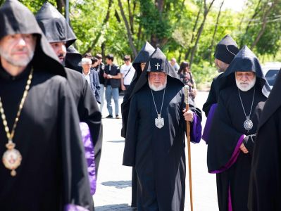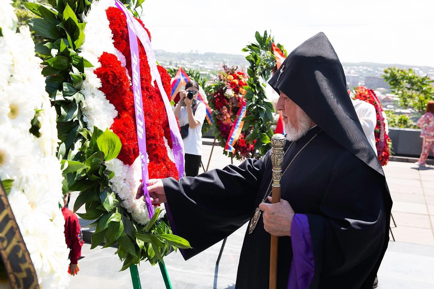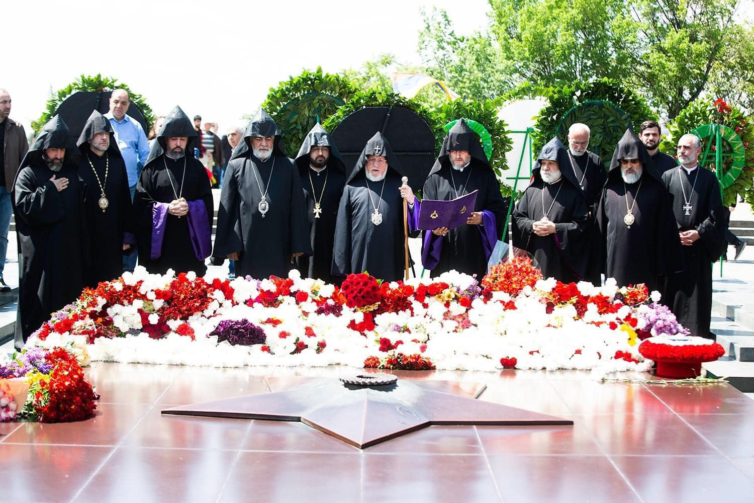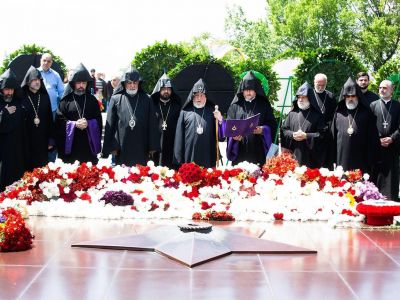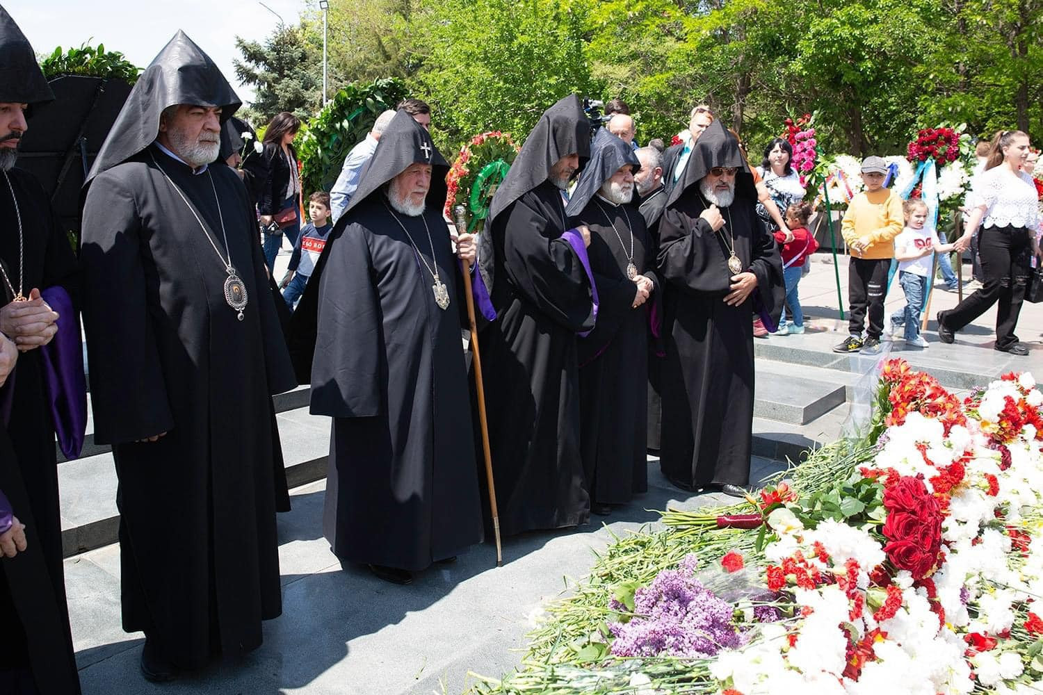 On May 9, on the occasion of Victory and Peace Day, His Holiness Karekin II, Supreme Patriarch and Catholicos of All Armenians; accompanied by the Brotherehood of the Mother See of Holy Etchmiadzin, visited the "Victory" park to pay tribute to the indelible memory of the heroes who died in the Great Patriotic War and Artsakh war.