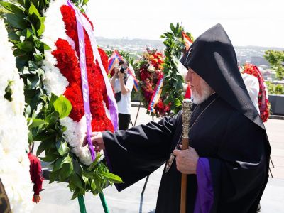 After placing a wreath at the monument of the unknown soldier, His Holiness offered a prayer to God for the peace and tranquility of souls of the brave Armenians who sacrificed their lives for the Motherland.