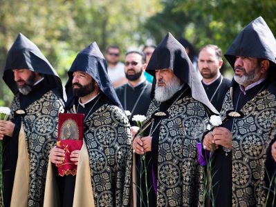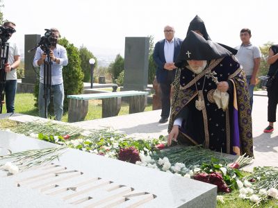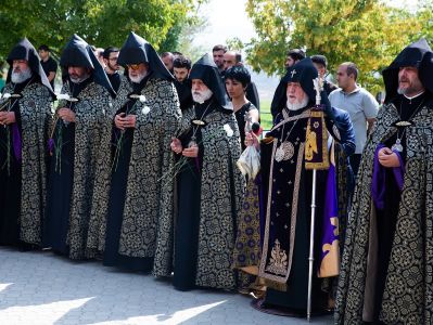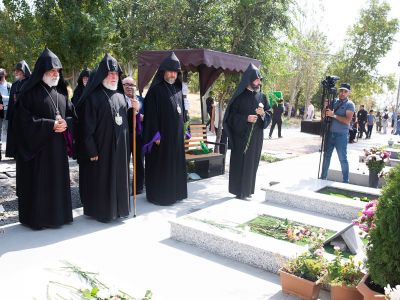 On September 21, on the occasion of the Independence Day of the Republic of Armenia, His Holiness Karekin II, Supreme Patriarch and Catholicos of All Armenians; together with the Episcopal class and the Brotherhood of the Mother See of Holy Etchmiadzin, visited the "Yerablur" Military Pantheon to pay tribute to the memory of the Armenians who sacrificed their lives for the independence and steadfastness of the motherland.