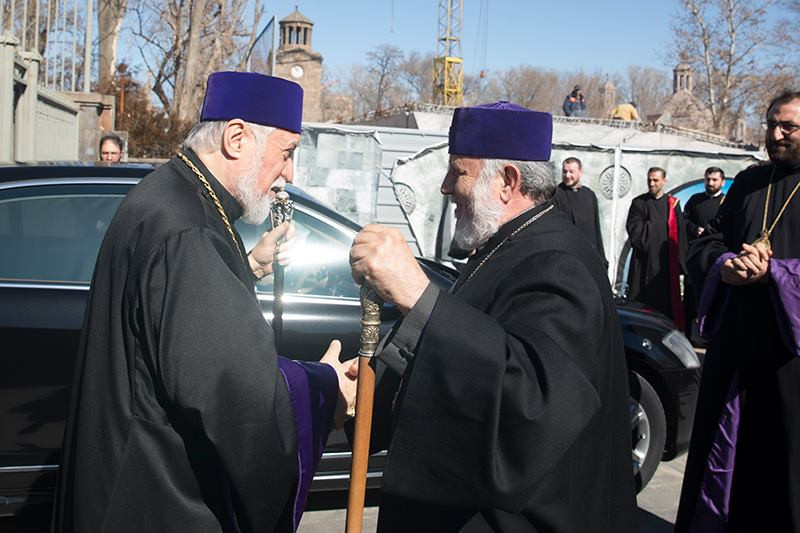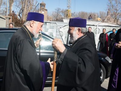 On February 19, at the invitation of His Holiness Karekin II, Supreme Patriarch and Catholicos of All Armenians; His Holiness Aram I, Catholicos of the Great House of Cilicia arrived at the Mother See of Holy Etchmiadzin.