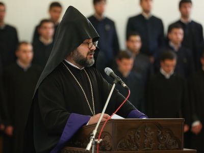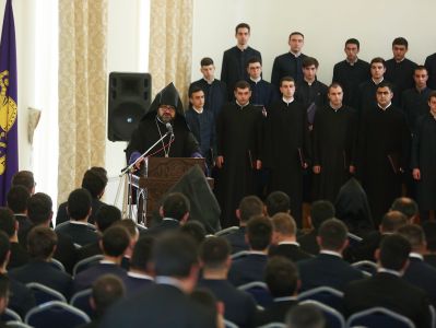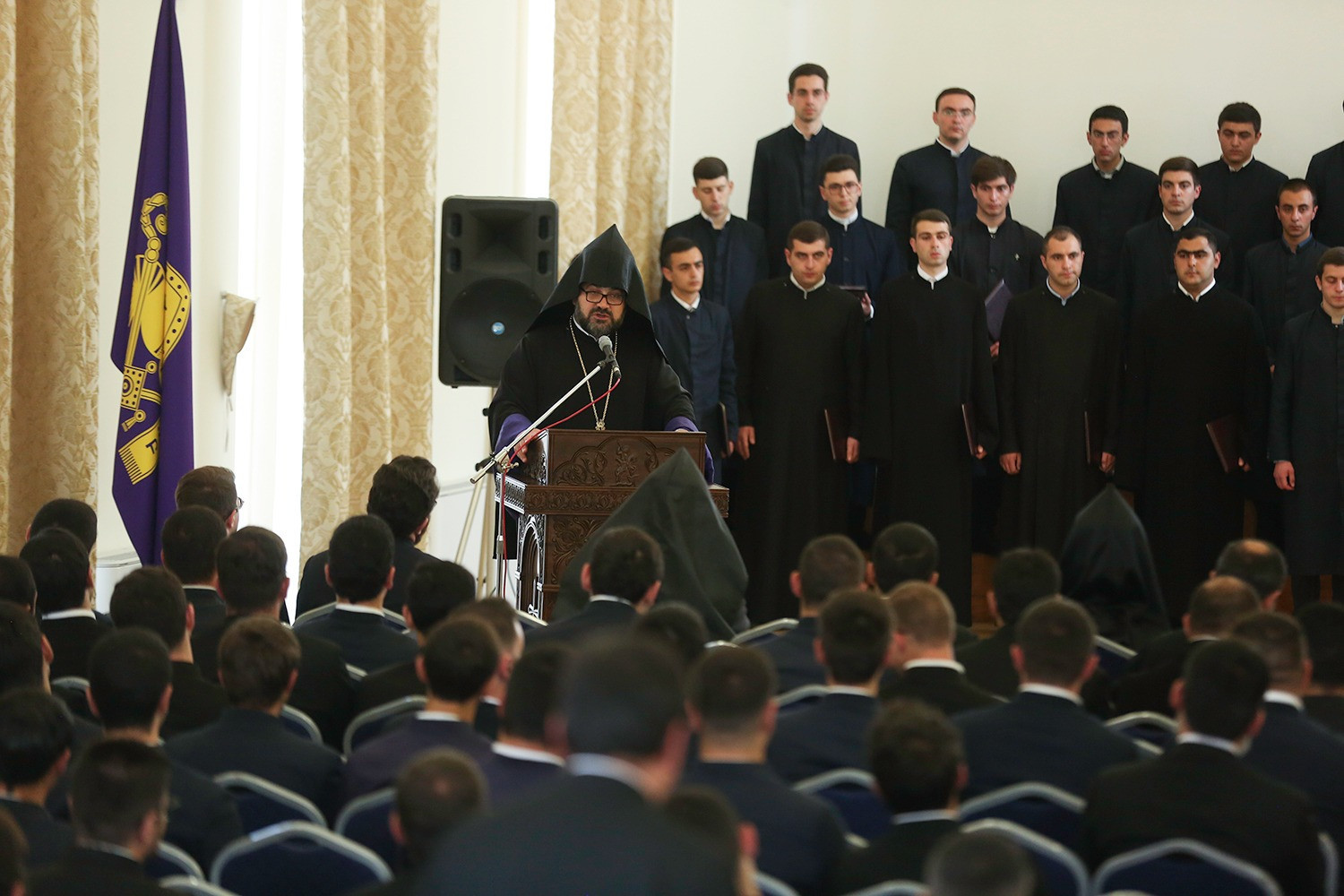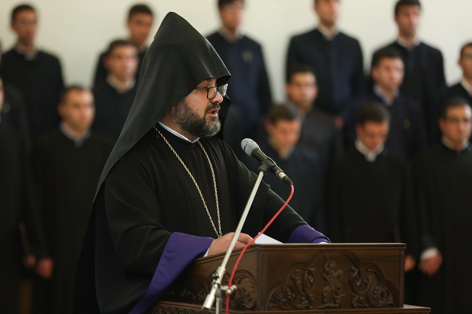 Not hoping and not believing that these well known names will be reborn and incarnated among the students of the seminary would mean leaving the trench of spiritual awakening and vigilance, turning your back on the enemy and running away from the mighty mission. After all, we have an order from St. Paul the Apostle. "Do not quench the Spirit." (1 Thess. 5:19)," stated Archimandrite Shahe, adding that the student who enter the Seminary is a child of a great vision, the same vision with which the Father of our faith, St. Gregory the Illuminator, built the Holy Etchmiadzin; Saint Sahak and Saint Mesrop turned the Bible into Armenian script, enlightening the hearts and minds of Armenians; Saint Vardananks painted the first pages of the book of Armenian heroic battles with the blood of martyrs, the famous and Christ-loving kings strengthened and built our homeland, theological professors ennobled our priceless manuscripts, our Patriarchs led the Armenian people to enlightenment in spiritual and corporeal wars.