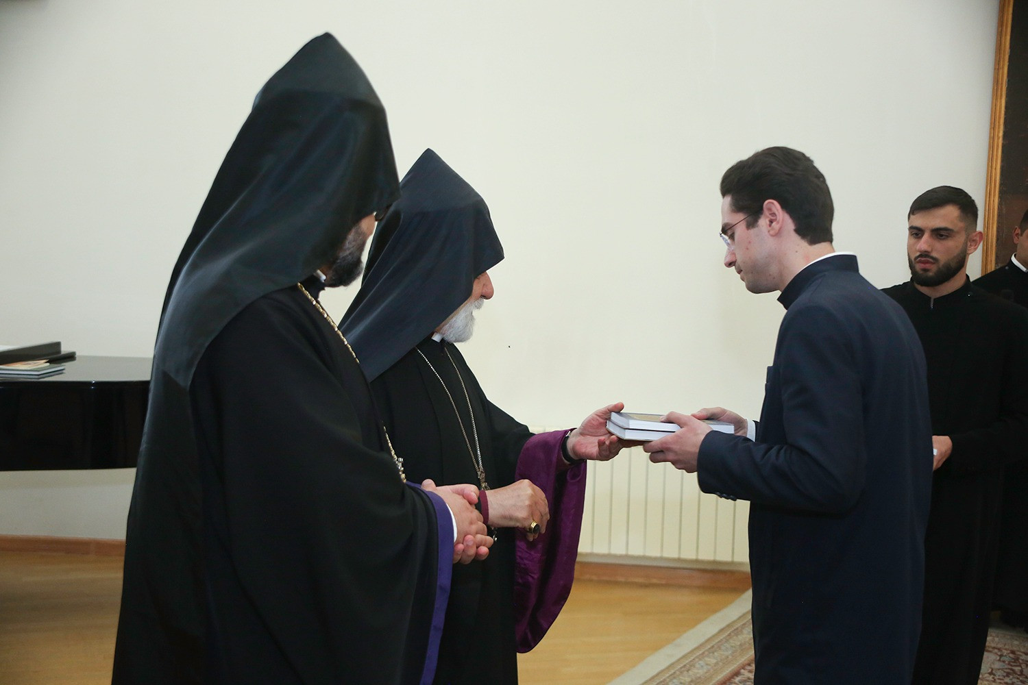The dedication ceremony, which has become a beautiful tradition, was also held. Awards were given to the students of the Gevorkian Theological Seminary, the Vaskenian Theological Academy of Sevan, and the Priest Accelerated Course, who have made high progress in their studies by His Eminence Archbishop Nathan Hovhannisyan, Director of the External Relations and Protocol Department of the Mother See