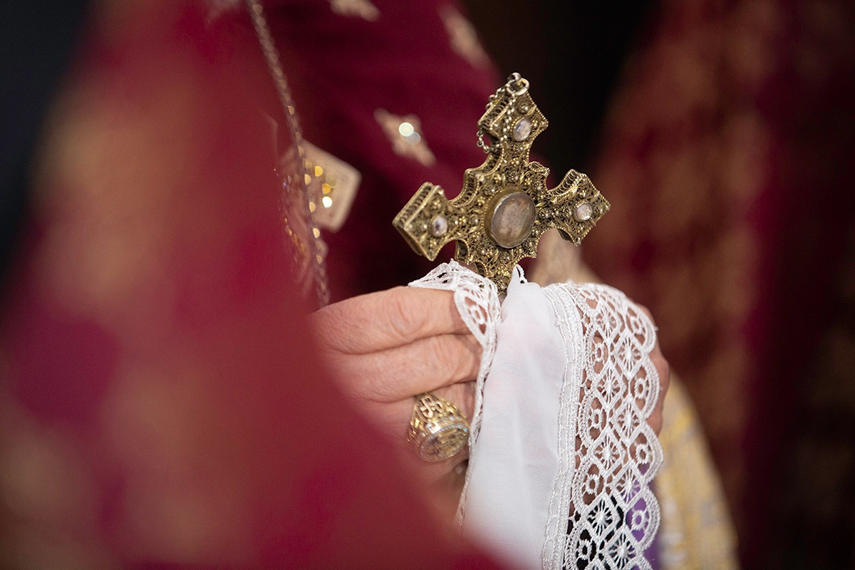 The cross bearing the relic of Saint Nerses the Graceful was brought to the Holy Archangels Church