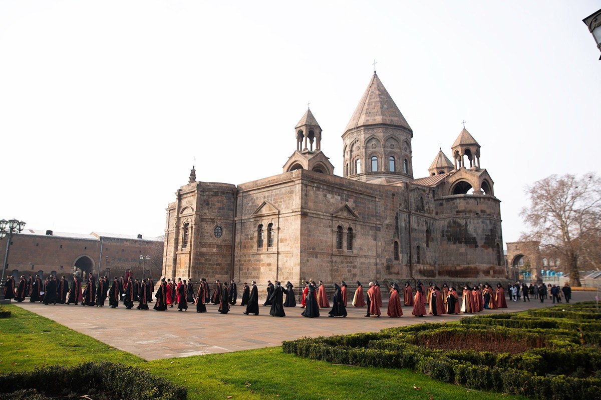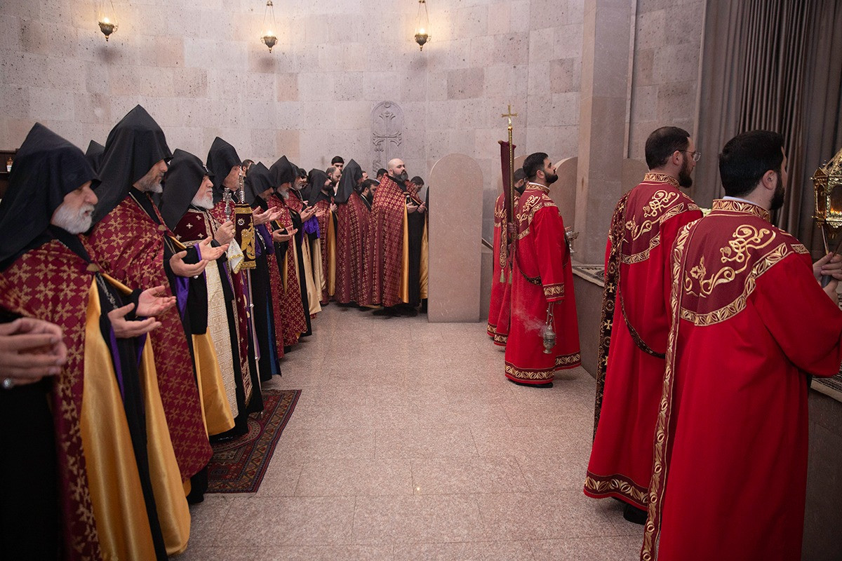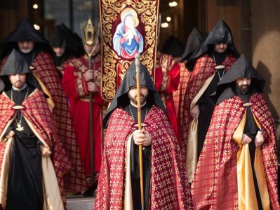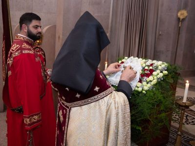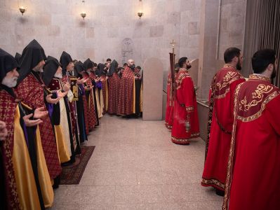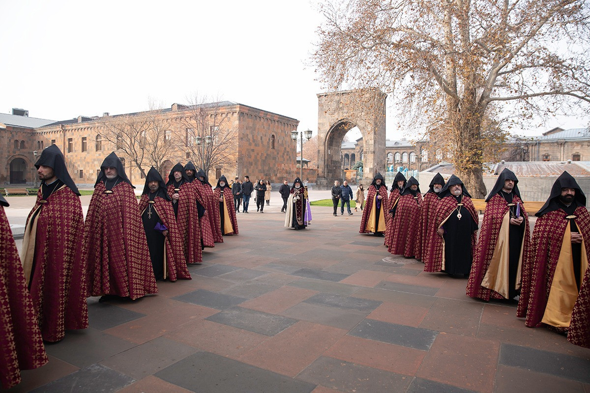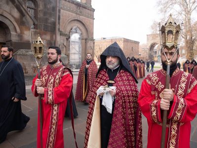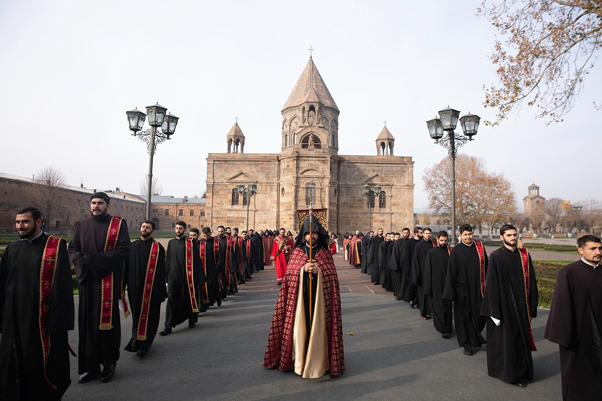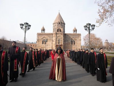 On December 16, under the leadership of His Holiness Karekin II, Supreme Patriarch and Catholicos of All Armenians; the procession of clergy brought the relic-bearing cross of Holy Patriarch Nerses the Graceful to the Holy Archangels Church of the Mother See of Holy Etchmiadzin under the singing of hymns for the spiritual comfort and worship of the faithful.