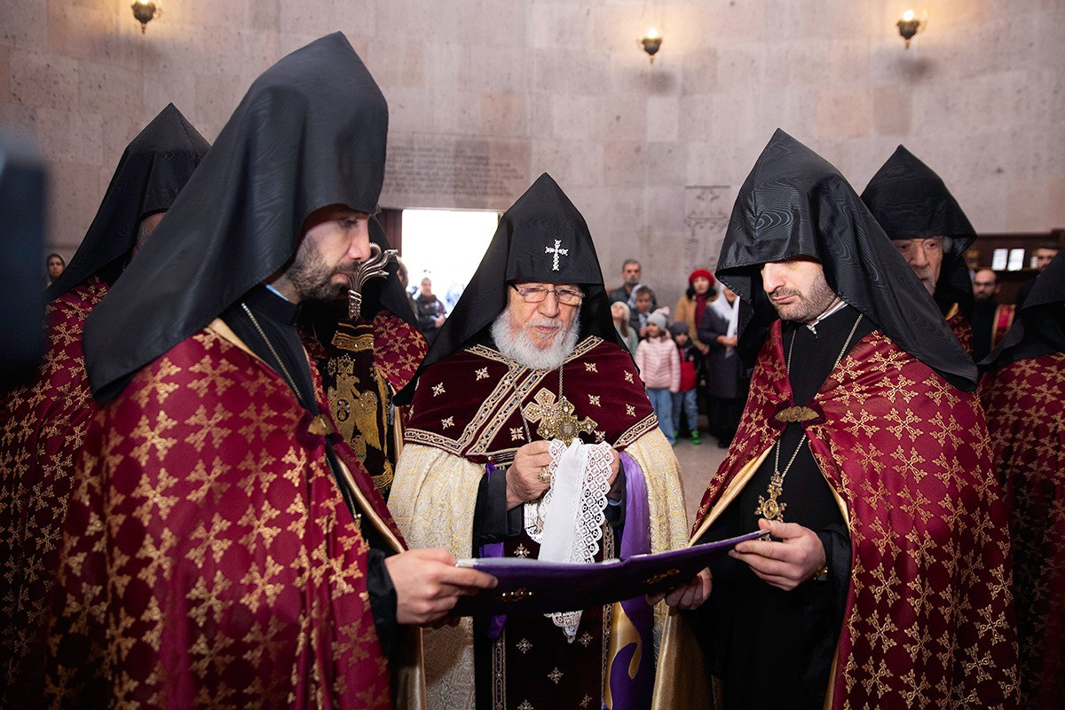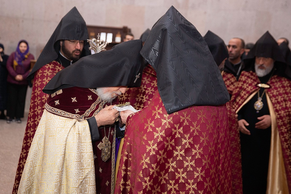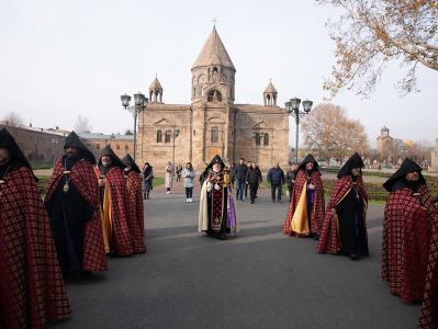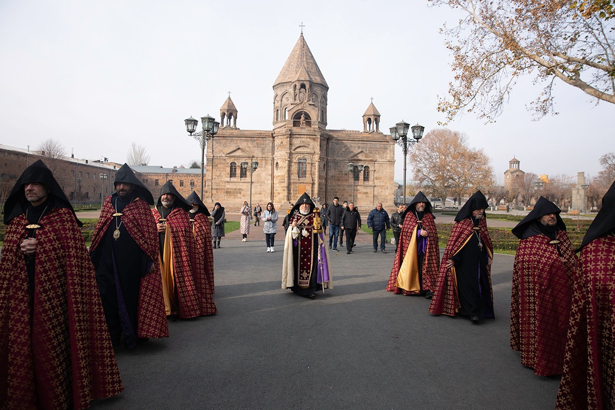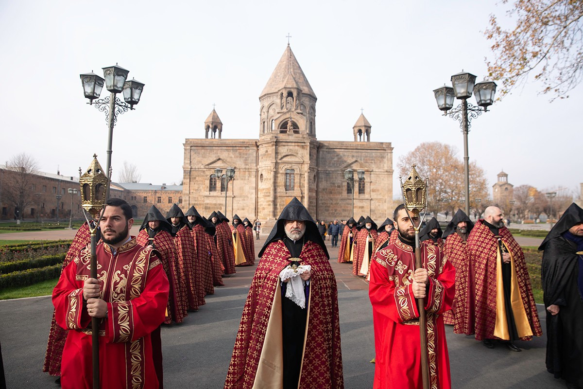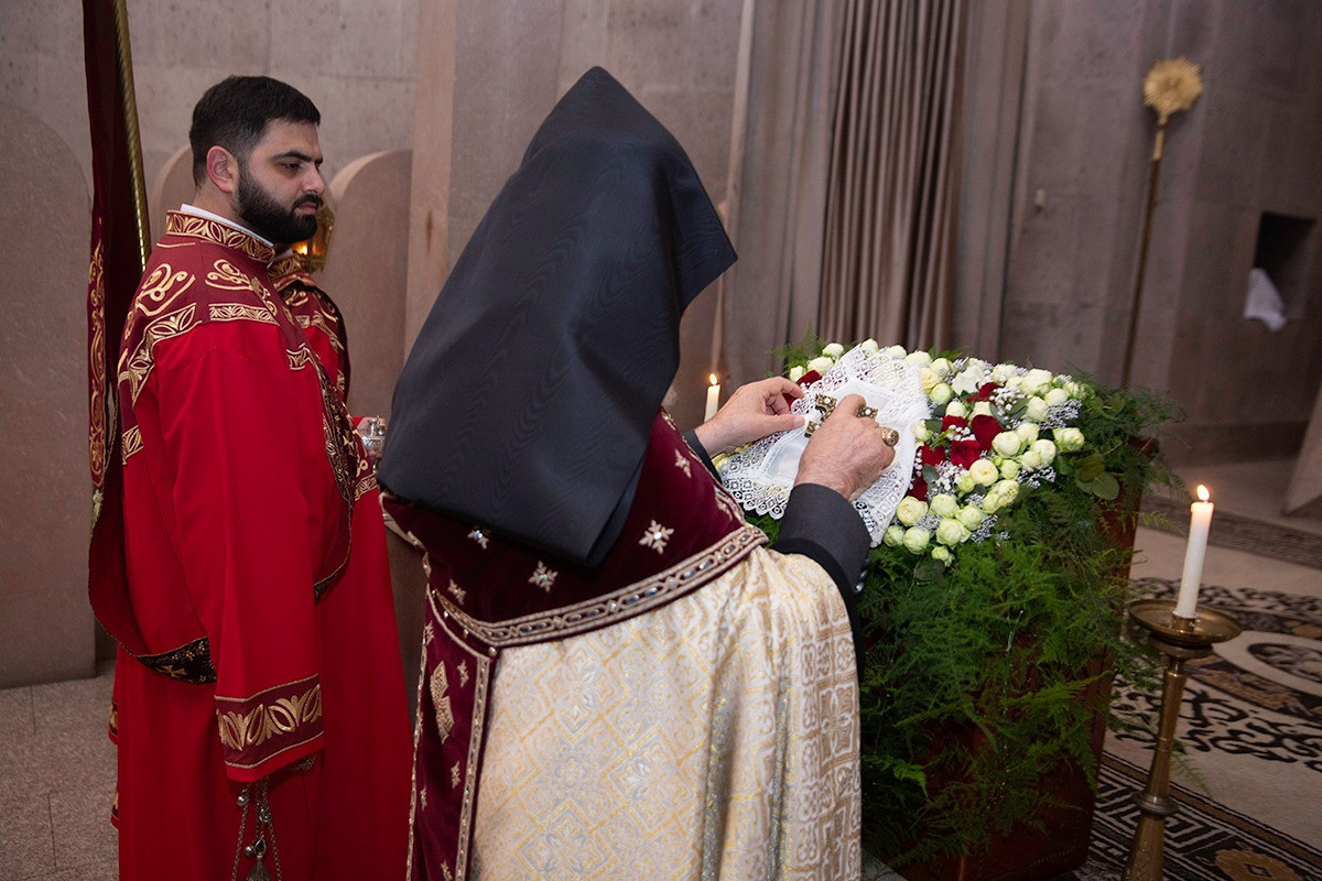 On December 16, under the leadership of His Holiness Karekin II, Supreme Patriarch and Catholicos of All Armenians; the procession of clergy brought the relic-bearing cross of Holy Patriarch Nerses the Graceful to the Holy Archangels Church of the Mother See of Holy Etchmiadzin under the singing of hymns for the spiritual comfort and worship of the faithful.