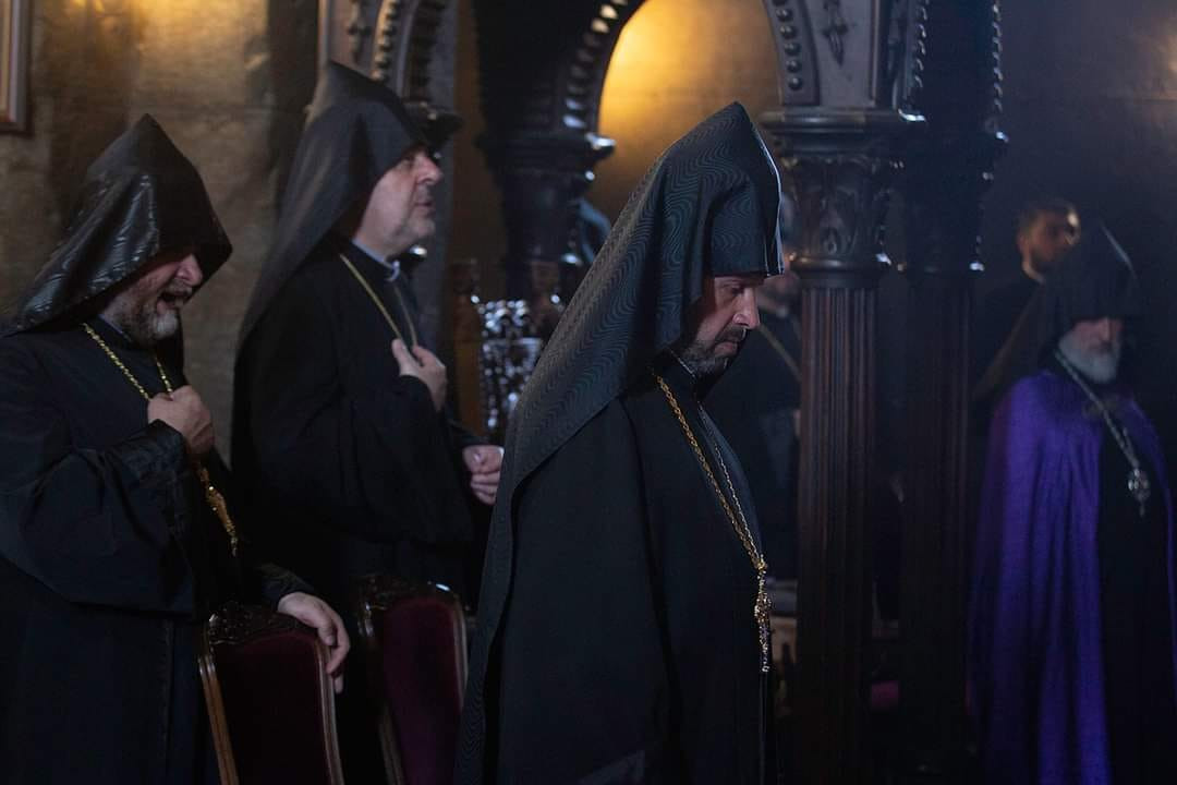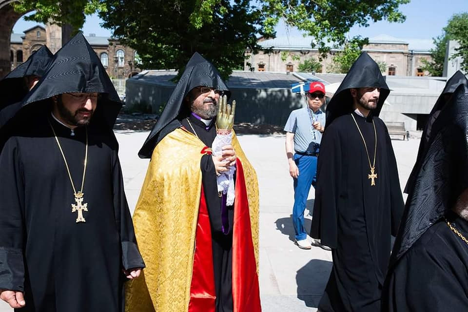 In the morning, the procession of clergymen accompanied by the faithful, moved to the St. Gayane Monastery. The procession led the Armenian Patriarch of Constantinople His Eminence Archbishop Sahak Mashalyan to the Arch of Saint Gregory the Illuminator, blessing the clergymen and faithful with the Holy Right Hand of the Saint, passing it on to Rev. Fr. Archimandrite Oshakan Kyulkyulyan, Primate of the Armenian Diocese of Irak.