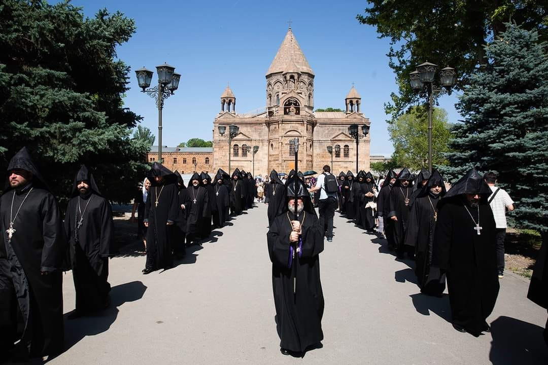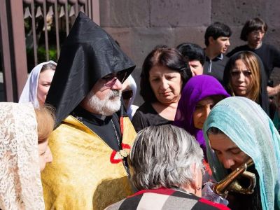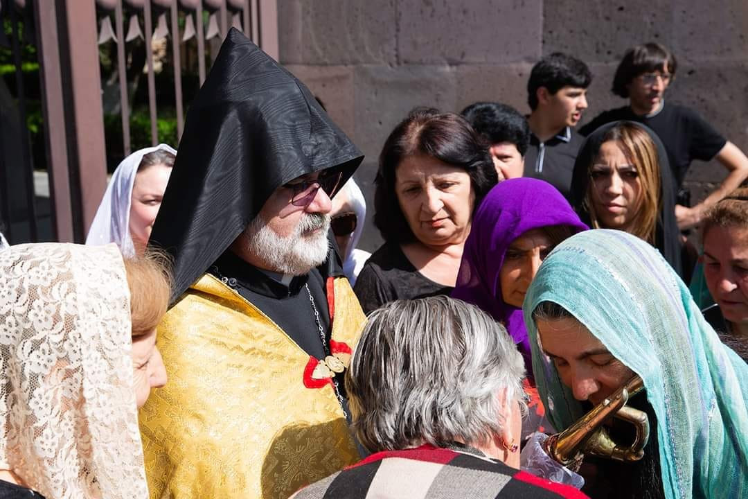 In front of the Saint Gayane Monastery, the procession was welcomed by His Grace Bishop Artak Tigranyan, Dean of the Monasteries, spiritual servants and numerous faithful Armenians.