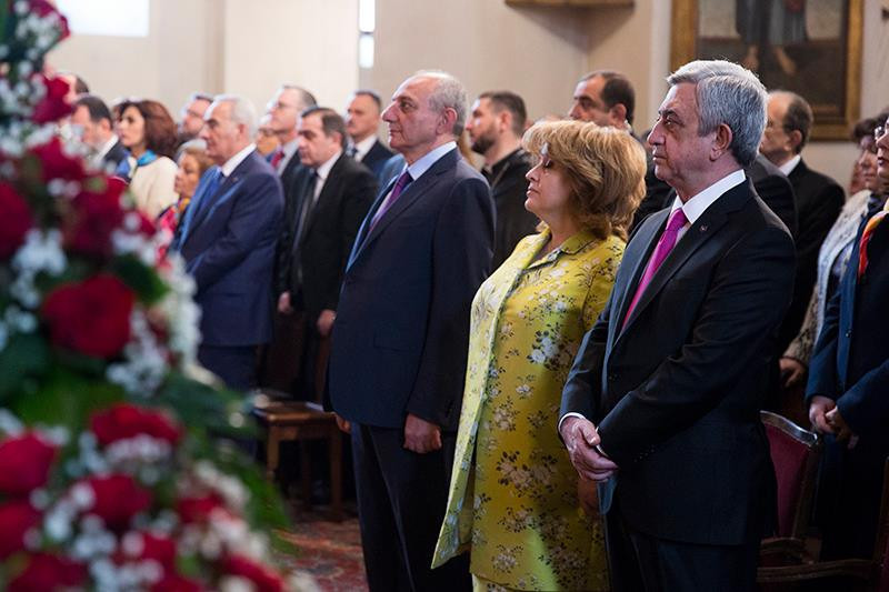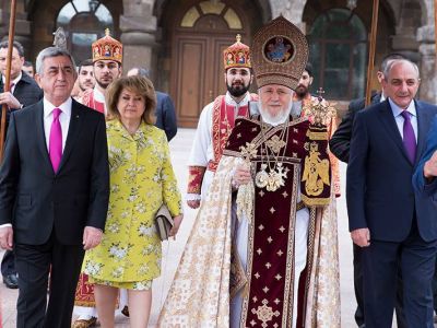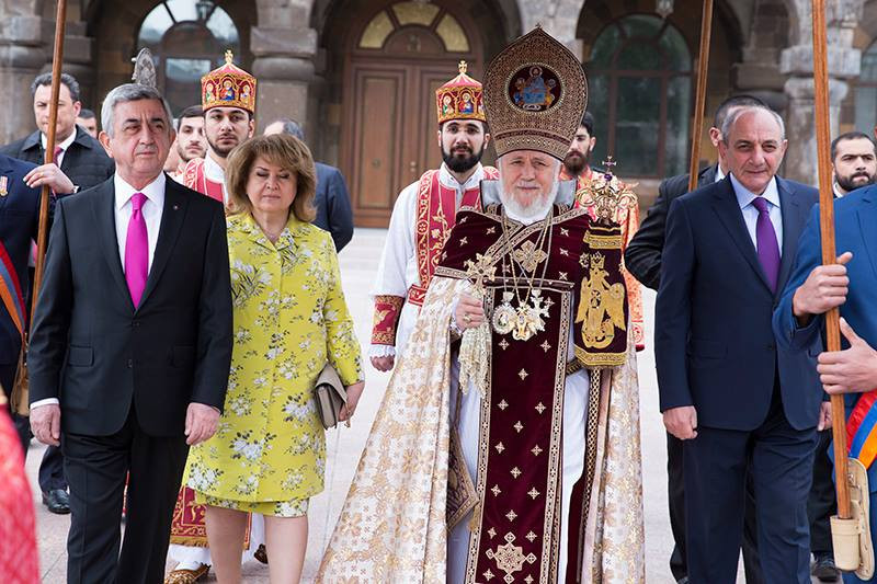With pontifical blessings, we greet the President of Armenia, His Excellency Serzh Sargsyan and the first lady present here today for the Divine Liturgy. We extend our greetings to President Bako Sahakyan of the Republic of Artsakh; Armenia’s state officials, and to all the newly-elected members of the parliament. It is our wish that the Lord may keep them strengthened in the love for their nation and the homeland, and with nation-spirited achievements be productive in their raesponsible and lofty mission. We greet with blessings and best wishes the heads and representatives of diplomatic missions accredited in Armenia. We bring our pontifical love and blessings to all our faithful people, in Armenia and in the Diaspora.