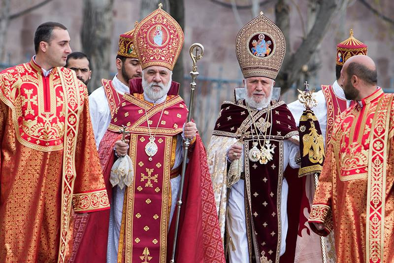 With the joyful tidings of the glorious Resurrection of our Lord Jesus Christ, we greet our spiritual brothers, the incumbents of the hierarchal Sees; His Holiness, Aram I, Catholicos of the Great House of Cilicia; the Armenian Patriarch of Jerusalem, Archbishop Nurhan Manoogian; the Locum Tenens of the Armenian Patriarchate of Constantinople, Archbishop Karekin Bekchian; and the heads of our Sister Churches, and all the clergy of our Holy Church.