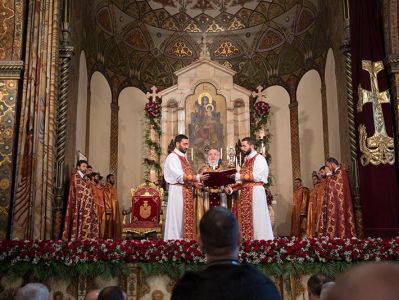 Assisting His Holiness during the Divine Liturgy were His Grace Bishop Hovnan Hakobyan, Grand Sacristan of Mother See and His Grace Bishop Moushegh Babayan, Director of Administrative Department of Mother See.