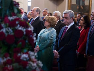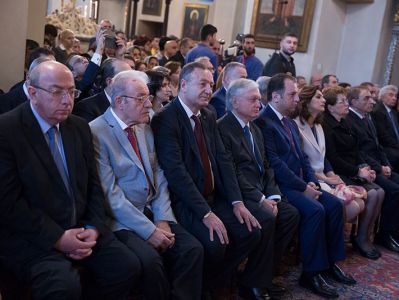 Attending the solemn Divine Liturgy were the newly elected President Armen Sargsyan; RA NA President Ara Babloyan; RA NA deputies; members of the RA Government; members of the Supreme Spiritual Council; Benefactors of the Mother See of Holy Etchmiadzin; heads and representatives of diplomatic missions and international organizations; education and cultural figures.