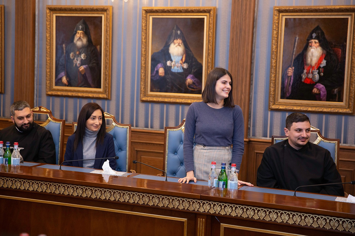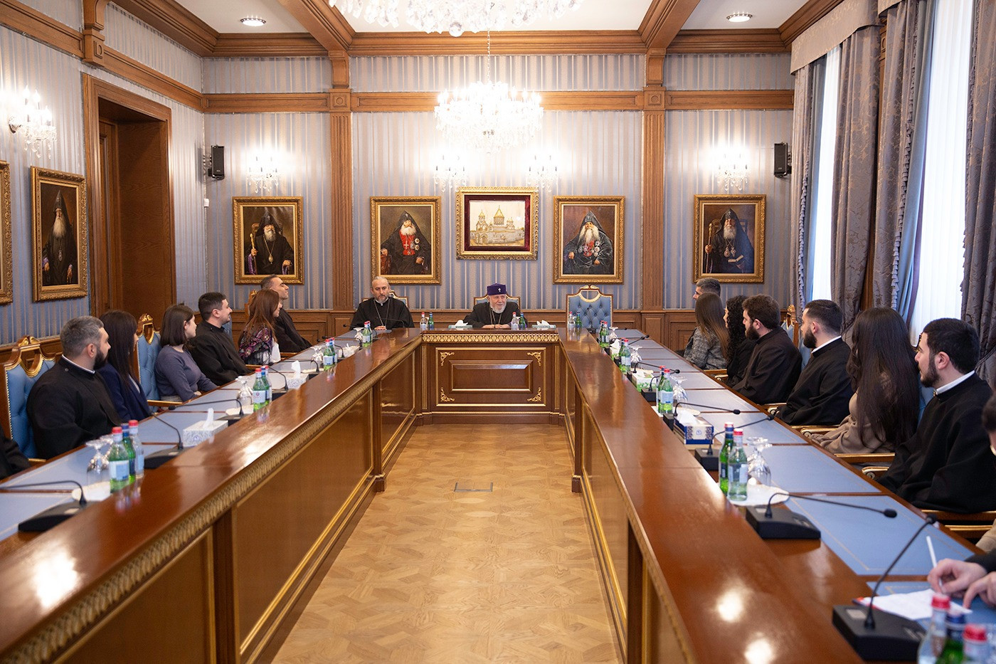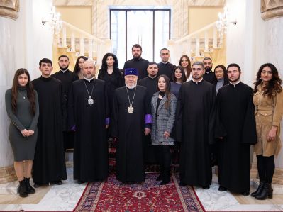 His Holiness conveyed his appreciation and Patriarchal message to the deacons, noting that for him, as the Armenian Patriarch, it is pleasant to see how the deacons form families. His Holiness expressed confidence that by God's will, many of them will bring their dedicated service to the Armenian Church as married priests.