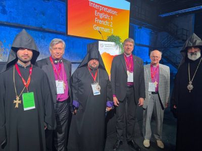 With the blessings of His Holiness Karekin II, Supreme Patriarch and Catholicos of All Armenians; the Armenian Apostolic Holy Church is represented at the CEC General Assembly by His Grace Bishop Hovakim Manukyan, Primate of the Armenian Diocese of Great Britain and Ireland; His Grace Bishop Vardan Navasardyan, Primate of the Armenian Diocese of the Baltic States and Rev. Fr. Archimandrite Garegn Hambardzumyan, Director of the Mission Department of the Mother See of Holy Etchmiadzin.