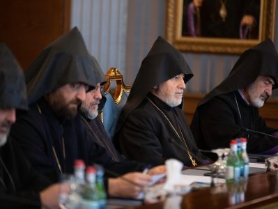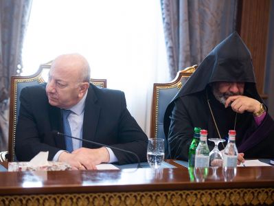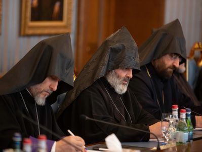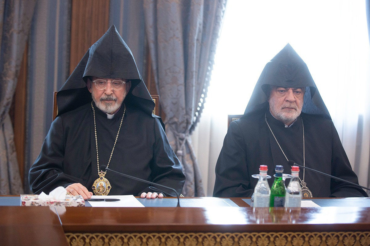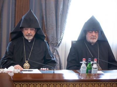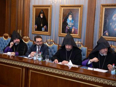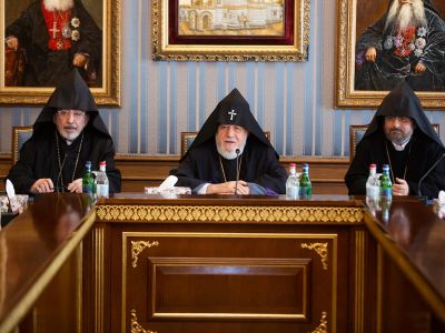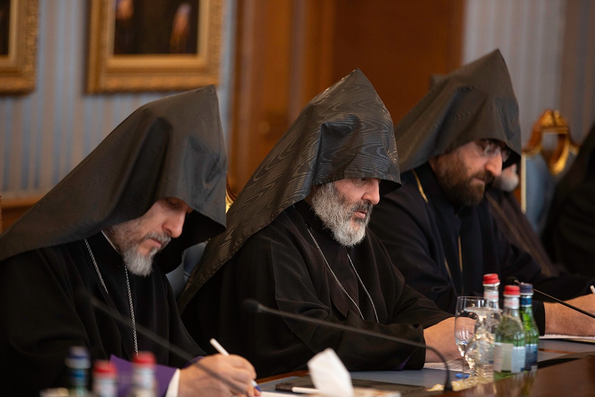 The meeting opened with the Lord's Prayer. Following which the Catholicos of All Armenians welcomed the participation of His Eminence Archbishop Sahak Mashalyan, the Armenian Patriarch of Constantinople to the meeting.