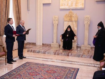 On January 10, in the Mother See of Holy Etchmiadzin, His Holiness Karekin II, Supreme Patriarch and Catholicos of All Armenians was awarded the Order of Honor of the Russian Federation. His Holiness was awarded the state award by the decree of Russian President Vladimir Putin for his great contribution to the development of cultural-humanitarian ties between Russia and Armenia.