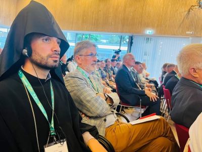 With the blessing of His Holiness Karekin II, Supreme Patriarch and Catholicos of All Armenians; the Mother See of Holy Etchmiadzin, was presented to the international assembly by Rev. Fr. Archimandrite Garegin Hambardzumyan, Director of the Mission Department of the Mother See of Holy Etchmiadzin.
