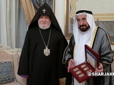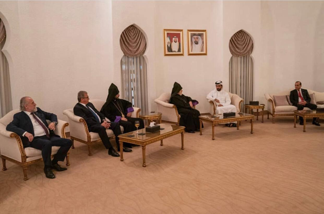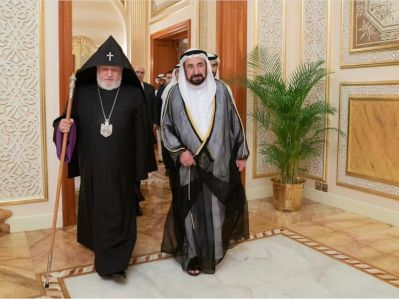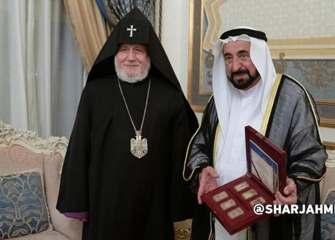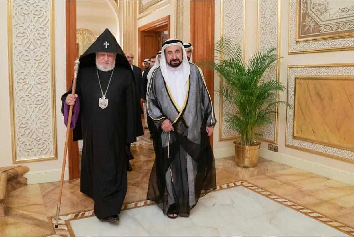 “Especially after the Armenian Genocide, hundreds of thousands of Armenian refugees found their safe haven in the host countries of the Arab people, forming a true and vital example of peaceful co-existence and cooperation. The life, unified participation in the country’s development and fraternal relationships of the children of the Armenian and Arab peoples in Sharjah are decorated with similar testimonies. We again express the gratitude of the sons and daughters of our people to the honourable President of the United Arab Emirates and to the Governor of the Emirate of Sharjah, His Highness Sheikh Dr. Sultan bin Muhammad Al-Qasimi, who in a spirit of the strengthening of friendships between peoples, beneficently help the local Christian communities. We wish to reflect in particular that thanks to Sheikh Dr. Sultan bin Muhammad Al-Qasimi philanthropic efforts, the Armenian community of Sharjah has a place of prayer, in order to organize its national-spiritual life. With thankfulness and gratitude We remember, Sheikh Dr. Sultan bin Muhammad Al-Qasimi’s God-pleasing decision during his visit to Armenia in 2006, to rebuild one of Armenian’s most famous monastic complexes, Haghartsin — an exceptional and exemplary expression of tolerance and respect for religious-cultural values. We offer our prayers and express our appreciation to His Highness for his admirable spirit of philanthropy and friendship.